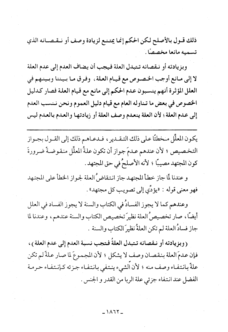 (وبزيادته أو نقصانه تتبدل العلة فتجيب نسبة العدم إلى عدم العلة)، فإن عدم العلة ينقصان وصف لا يشكل، لأن المجموعة لما صار علة لم تكن علة بانتفاء وصف منه، لن الشيء ينتفي بانتفاء جزئه كانتفاء حرمة الفضل عند انتفاء جزئي علة الربا من القدر والجنس.