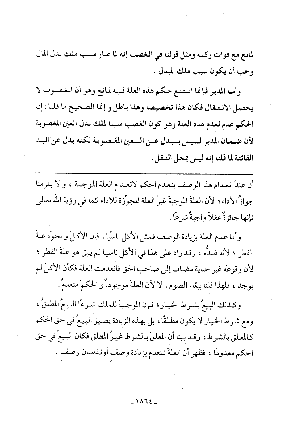 وأما عدم العلة بزيادة الوصف فمثل الأكل ناسيًا، ف إن الأكل ونحوه علة الفطر، لأنه ضد، وقد زاد على هذا في الكل ناسيًا لم يبق هو علة الفطر، لأن وقوعه غير جناية مضاف إلي صاحب الحق فانعدمت العلة فكان الأكل لم يوجد، فلهذا قلنا ببقاء الصوم، لا لأن العلة موجودة والحكم منعدم.