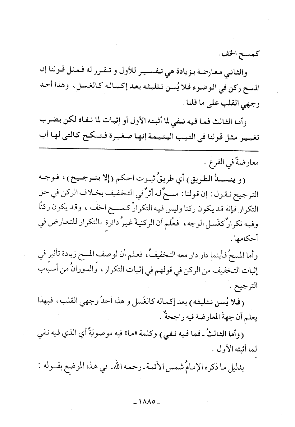وأما المسح فأينما دار دار معه التخفيف، فعلم أن لوصف المسح زيادة تأثير في إثبات التخفيف من الركن في قولهم في إثبات التكرار، والدوران من أسباب الترجيح.