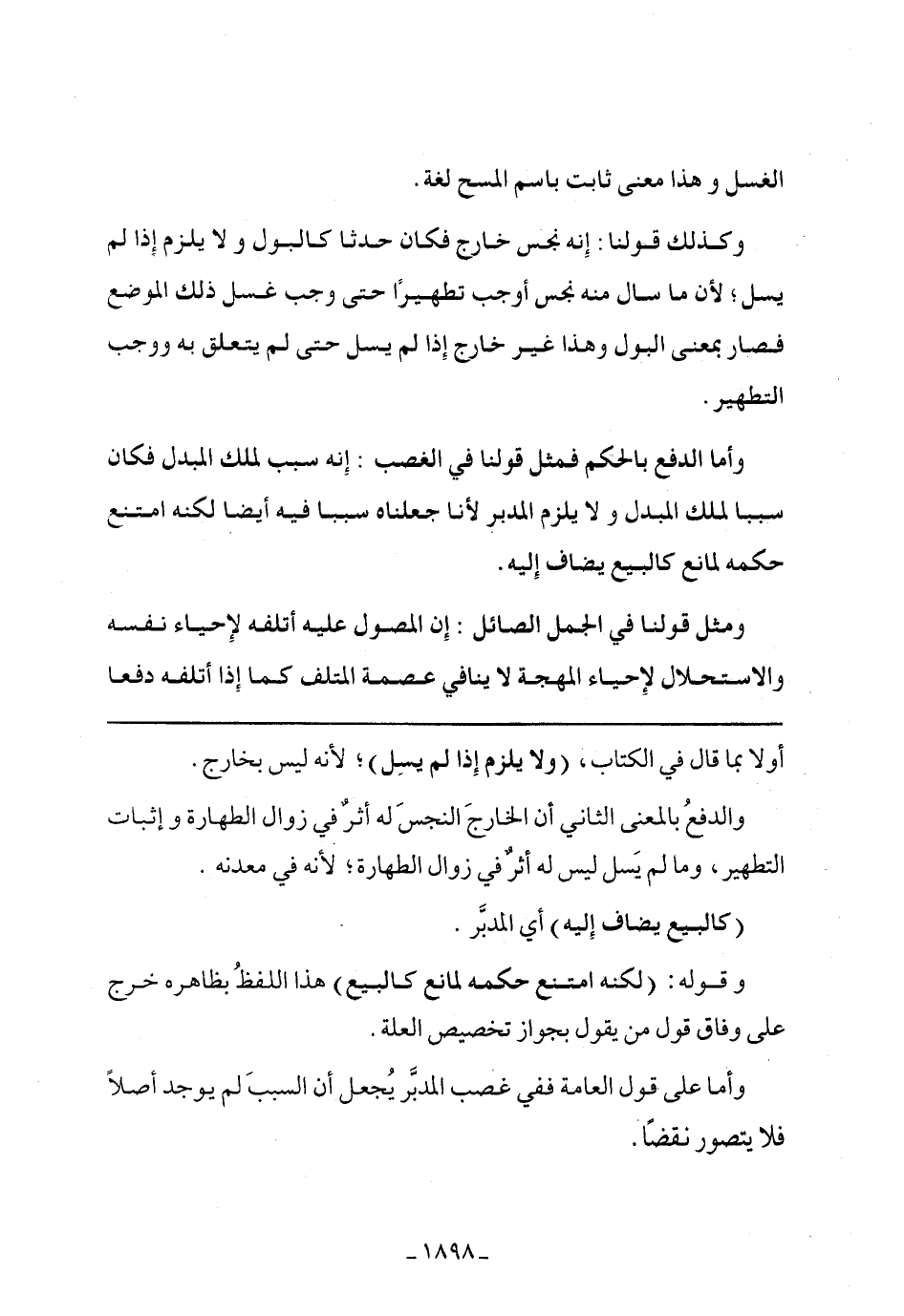 والدفع بالمعنى الثاني أن الخارج النجس له أثر في زوال الطهارة وإثبات التطهير، وما لم يسل ليس له أثر في زوال الطهارة، لأنه في معدنه.