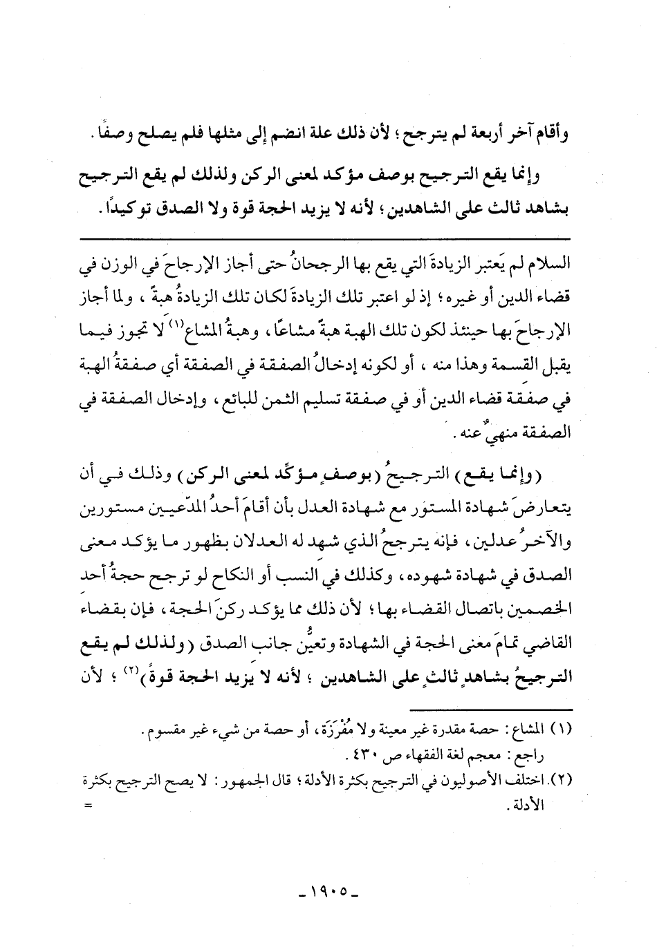 السلام لم يعتبر الزيادة التى يقع بها الرجحان حتى أجاز الإرجاح في الوزن في قضاء الدين أو غيره, إذ لو اعتبر تلك الزيادة لكان تلك الزيادة هبة, ولما أجاز الإرجاح بها حينئذ لكون تلك الهبة هبة مشاعًا, وهبة المشاع لا تجوز فيما يقبل القسمة وهذا منه, أو لكونه إدخال الصفقة في الصفقة أي صفقة الهبة في صفقة قضاء الدين أوفى صفقة تسليم ثمن للبائع, وإدخال الصفقة في الصفقة منهي عنه.