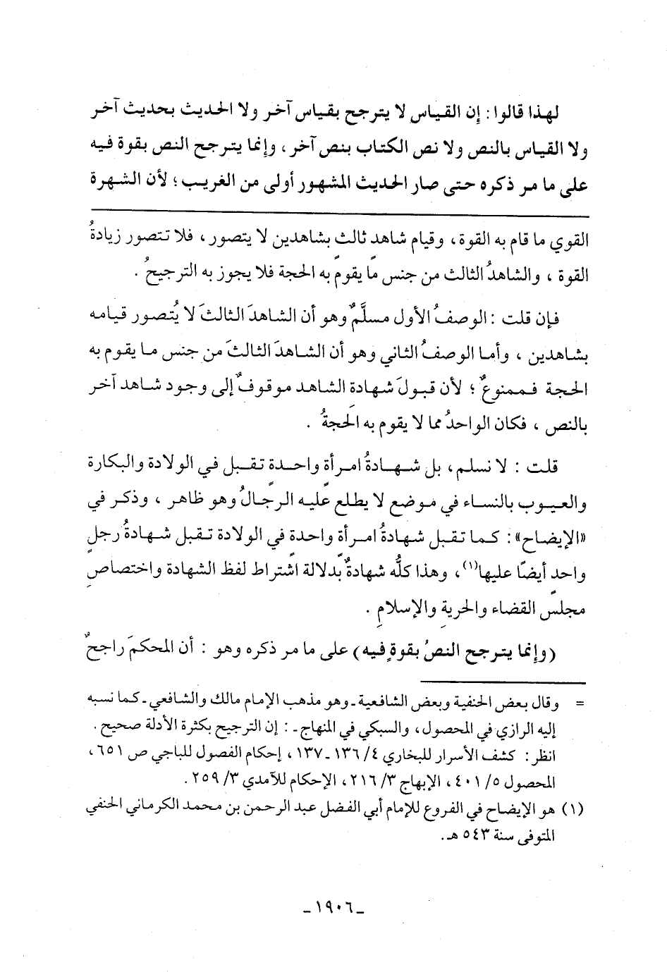 فإن قلت: الوصف الأول مسلم وهو أن الشاهد الثالث لا يتصور قيامه بشاهدين, وأما الوصف الثاني وهو أن الشاهد الثالث من جنس ما يقوم به الحجة فممنوع, لأن قبول شهادة الشاهد موقوف إلى وجود شاهد آخر بالنص ,فكان الواحد مما لا يقوم به الحجة.