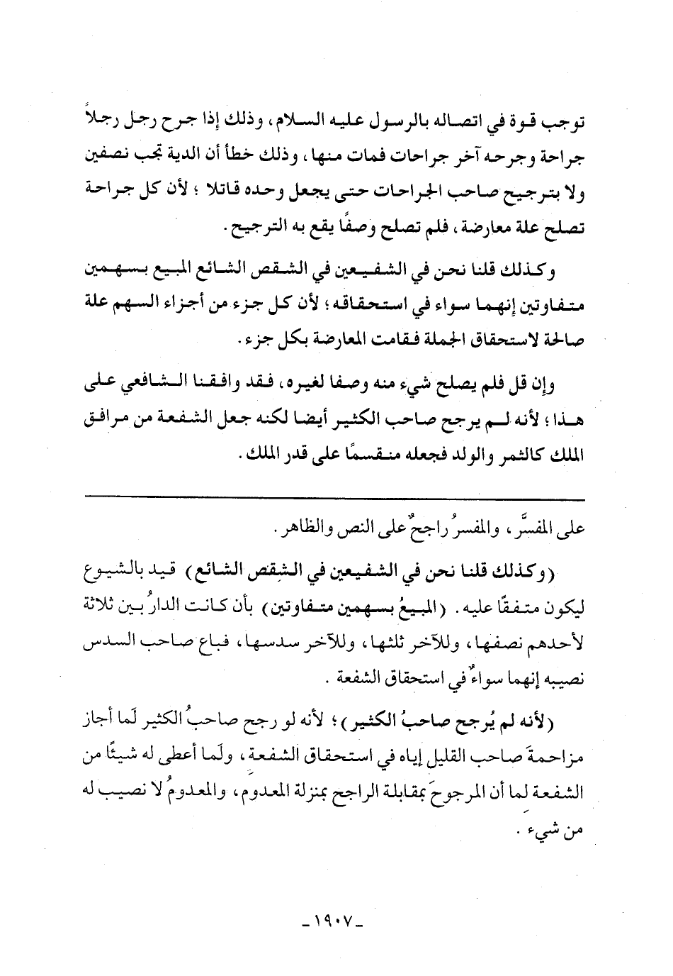 (لأنه لم يرجح الكثير) , لأنه لو رجح صاحب الكثير لما جاز مزاحمة صاحب القليل إياه في استحقاق الشفعة, ولما أعطى له شيئًا من الشفعة لم أن المرجوح بمقابلة الراجح بمنزلة المعدوم, والمعدوم لا نصيب له من شيء.
