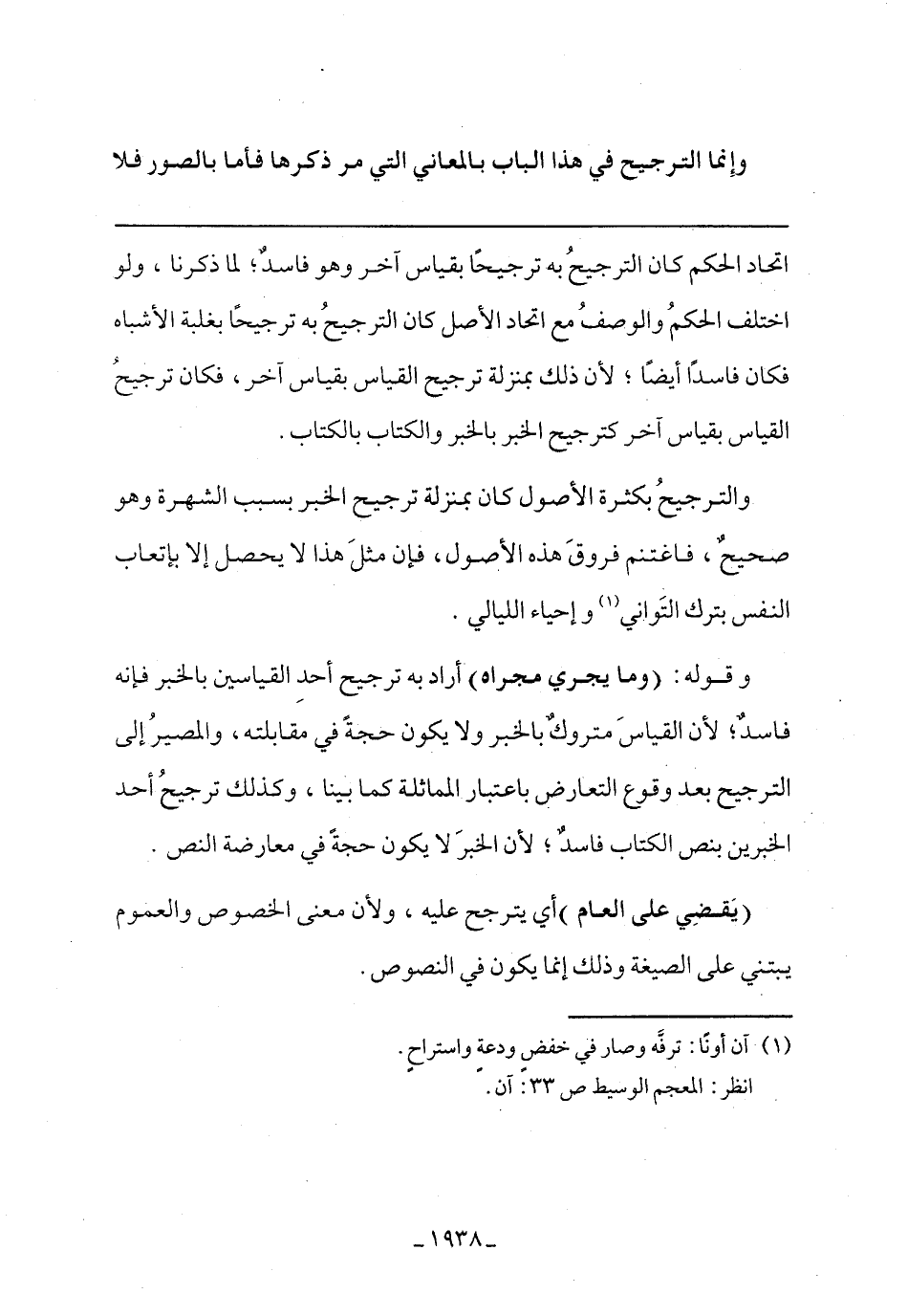 وقوله: (وما يجري مجراه) أراد به ترجيح أحد القياسين بالخبر فإنه فاسد؛ لأن القياس متروك بالخبر ولا يكون حجة في مقابلته، والمصير إلى الترجيح بعد وقوع التعارض باعتبار المماثلة كما بينا، وكذلك ترجيح أحد الخبرين بنص الكتاب فاسد؛ لأن الخبر لا يكون حجة في معارضة النص.