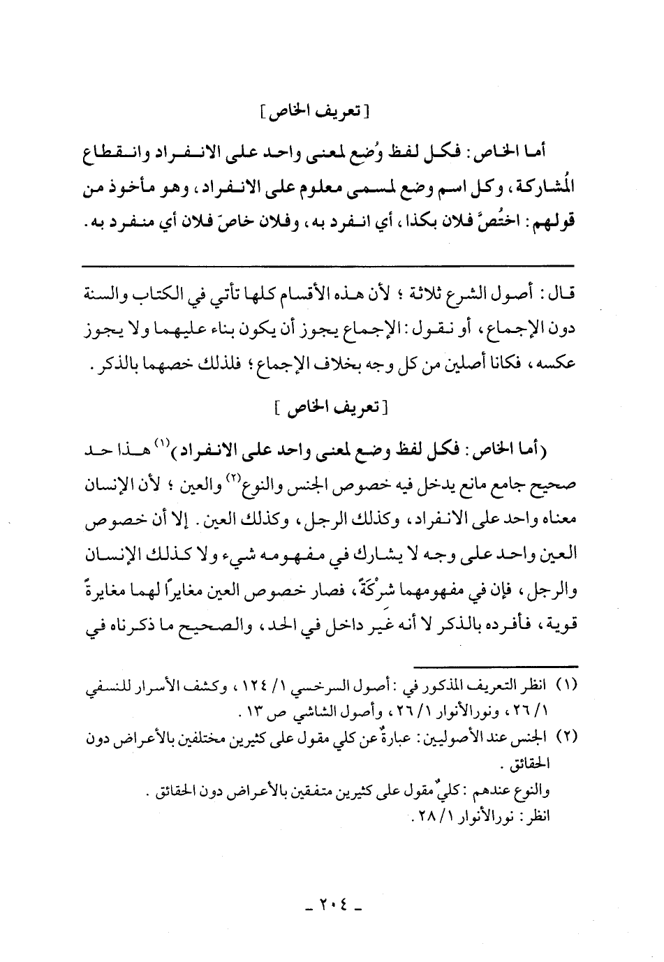 (أما الخاص: فكل لفظ وضع لمعنى واحد على الانفراد) هذا حد صحيح جامع مانع يدخل فيه خصوص الجنس والنوع والعين؛ لأن الإنسان معناه واحد على الانفراد، وكذلك الرجل، وكذلك العين. إلا أن خصوص العين واحد على وجه لا يشارك في مفهومه شيء ولا كذلك الإنسان والرجل، فإن في مفهومها شركة، فصار خصوص العين مغايرًا لهما مغايرة قوية، فأفرده بالذكر لا أنه غير داخل في الحد، والصحيح ما ذكرناه في