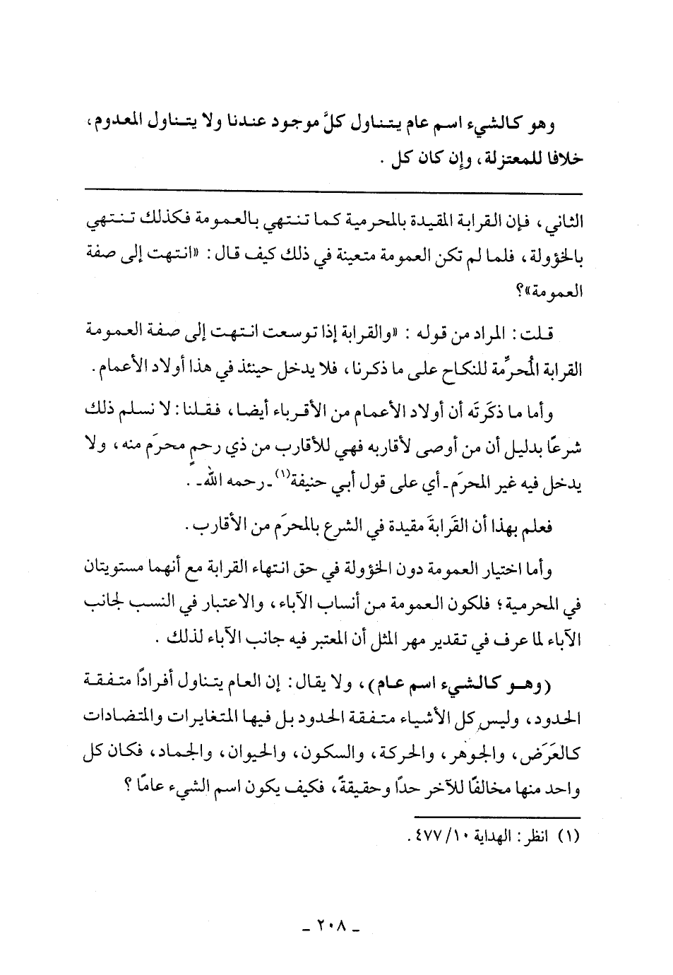 الثاني، فإن القرابة المقيدة بالحرمية كما تنتهي بالعمومية فكذلك تنتهي بالخؤولة، فلما تكن العمومية مستعينة في ذلك كيف قال: "انتهت إلى صفة العمومة"؟