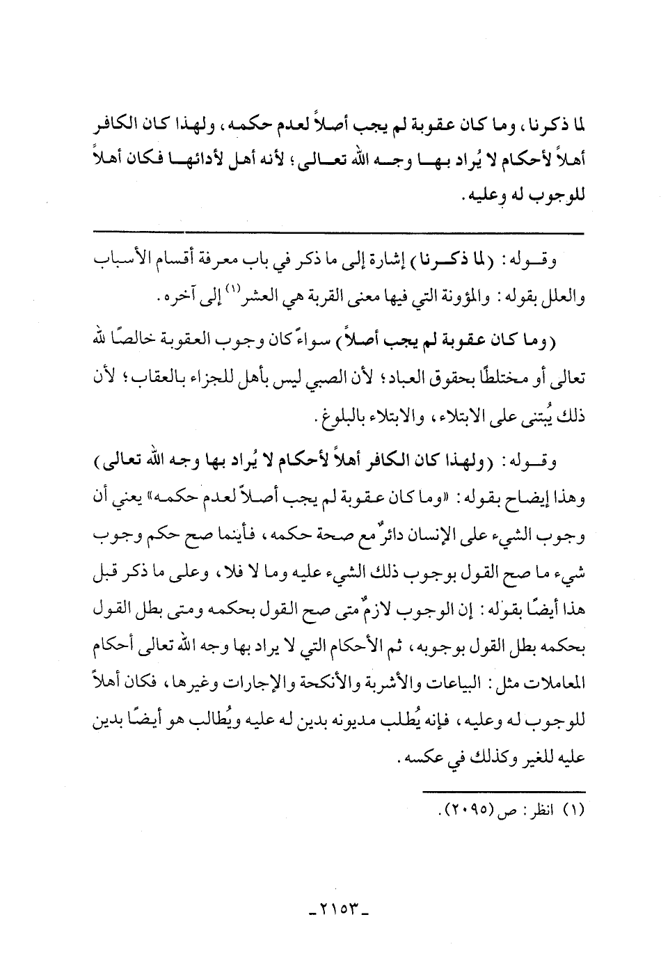 وقوله: (ولهذا كان الكافر أهلًا لأحكام لا يراد بها وجه الله تعالى) وهذا إيضاح بقوله: "وما كان عقوبة لم يجب أصلًا لعدم حكمه"يعني أن وجوب الشيء على الإنسان دائر مع صحة حكمه فأينما صح حكم وجوب شيء ما صح القول بوجوب ذلك الشيء عليه وما لا فلا وعلى ما ذكر قبل هذا أيضا بقوله: إن الوجوب لازم متى صح القول بحكمه ومتى بطل القول بحكمه بطل القول بوجوبه ثم الأحكام التي لا يراد بها وجه الله تعالى أحكام المعاملات مثل: البياعات والأشربة والأنكحة والإجارات وغيرها فكان أهلًا للوجوب له وعليه فإنه يطلب مديونه بدين له عليه ويطالب هو أيضًا بدين عليه للغير وكذلك في عكسه.