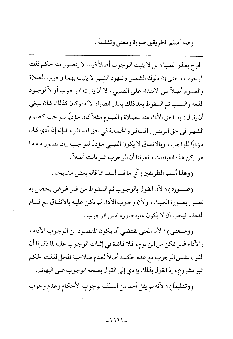 (وتقليدًا) لأنه لم يقل أحد من السلف بوجوب الأحكام وعدم وجوب