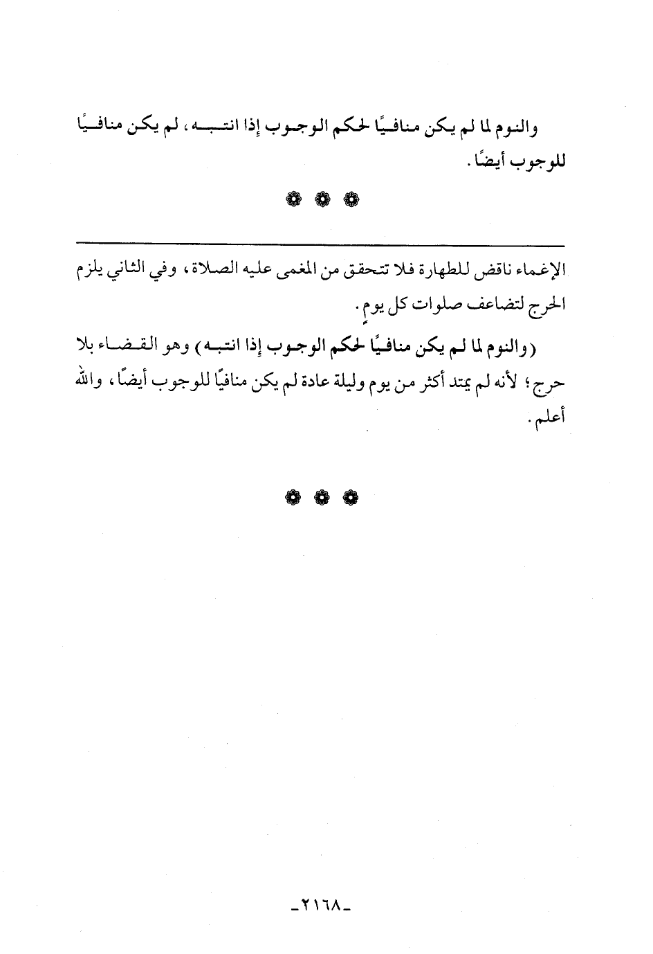 (والنوم لما لم يكن منافيًا لحكم الوجوب إذا انتبه) وهو القضاء بلا حرج لأنه لم يمتد أكثر من يوم وليلة عادة لم يكن منافيًا للوجوب أيضًا والله أعلم.
