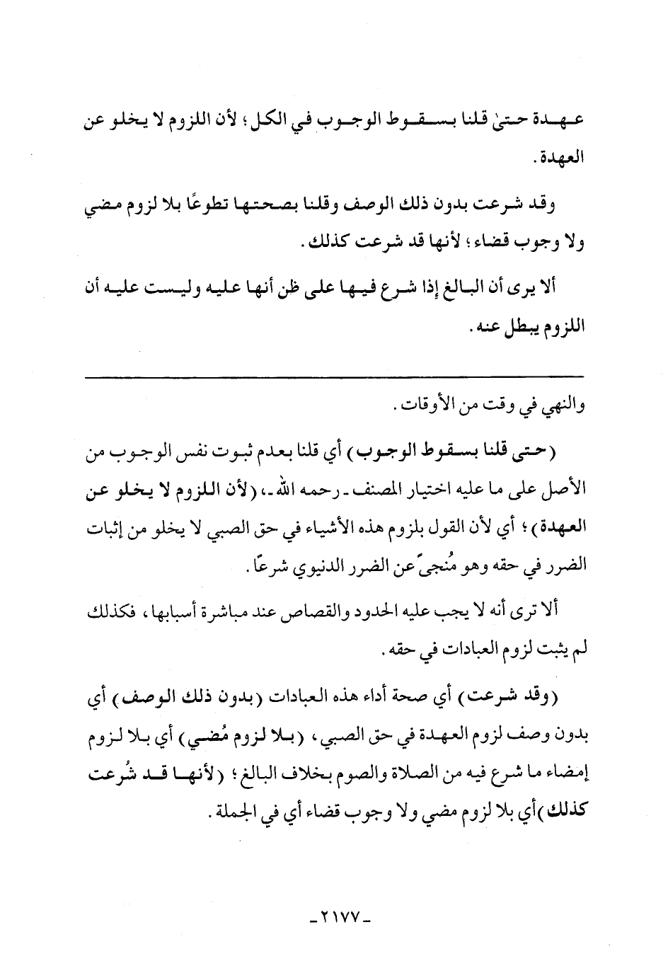 (حتى قلنا بسقوط الوجوب) أي قلنا بعدم ثبوت نفس الوجوب من الأصل على ما عليه اختيار المصنف -رحمه الله- (لأن اللزوم لا يخلو عن العهدة) أي لأن القول بلزوم هذه الأشياء في حق الصبي لا يخلو من إثبات الضرر في حقه وهو منجى عن الضرر الدنيوي شرعًا.