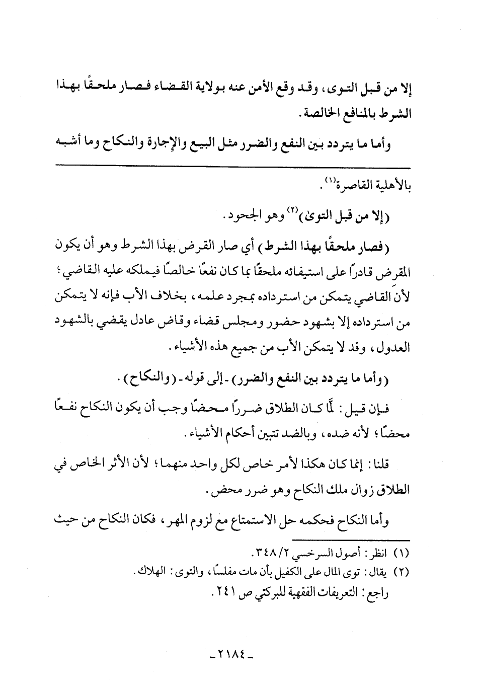 (فصار ملحقًا بهذا الشرط) أي صار القرض بهذا الشرط وهو أن يكون المقرض قادرًا على استيفائه ملحقًا بما كان نفعًا خالصًا فيملكه عليه القاضى؛ لأن القاضى يتمكن من استرداده بمجرد علمه, بخلاف الأب فإنه لا يتمكن من استرداده إلا بشهود حضور ومجلس قضاء وقاض عادل يقضى بالشهود العدول, وقد لا يتمكن الأب من جميع هذه الأشياء.