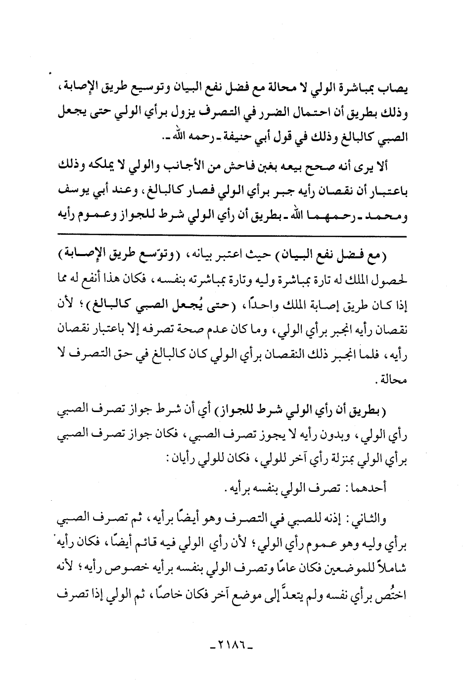 (مع فضل نفع البيان) حيث اعتبر بيانه, (وتوسع طريق الإصابة) لحصول الملك له تارة بمباشرة وليه وتارة بمباشرته بنفسه, فكان هذا أنفع له مما إذا كان طريق إصابة الملك واحدًا, (حتى يجعل الصبى كالبالغ)؛ لأن نقصان رأيه اتجبر برأى الولى, وما كان عدم صحة تصرفه إلا باعتبار نقصان رأيه, فلما انجبر ذلك النقصان برأى الولي كان كالبالغ في حق التصرف لا محالة.