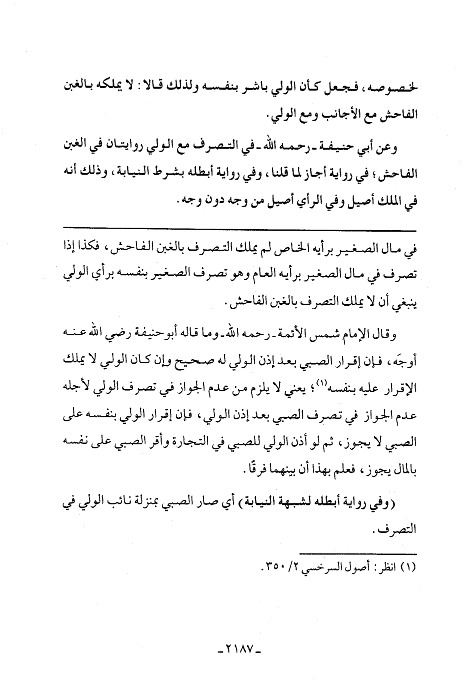 وقال الإمام شمس الأئمة - رحمه الله - وما قاله أبو حنيفة رضى الله عنه أوجه, فإن إقرار الصبى بعد إذن الولي له صحيح وإن كان الولي لا يملك الإقرار عليه بنفسه؛ يعنى لا يلزم من عدم الجواز في تصرف الولي لأجله عدم الجواز في تصرف الصبى بعد إذن الولى, فإن إقرار الولي الولي بنفسه على الصبى لا يجوز, ثم لو أذن الولي للصبى في التجارة وأقر الصبى على نفسه بالمال يجوز, فعلم بهذا أن بينهما فرقًا.