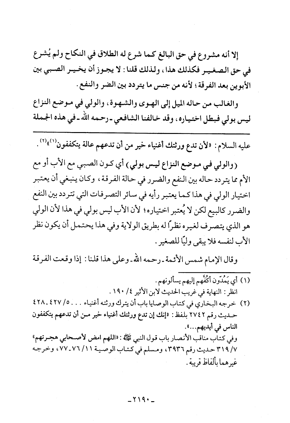 (والولي في موضع النزاع ليس بولي) أي كون الصبى مع الأب أو مع الأم مما يتردد حاله بين النفع والضرر في حالة الفرقة, وكان ينبغى أن يعتبر اختيار الولي في هذا كما يعتبر رأيه في سائر التصرفات التى تتردد بين النفع والضرر كالبيع لكن لا يعتبر اختياره؛ لأن الأب ليس بولى في هذا لأن الولي هو الذي يتصرف لغيره نظرًا له بطريق الولاية وفى هذا يحتمل أن يكون نظر الأب لنفسه فلا يبقى وليًا للصغير.