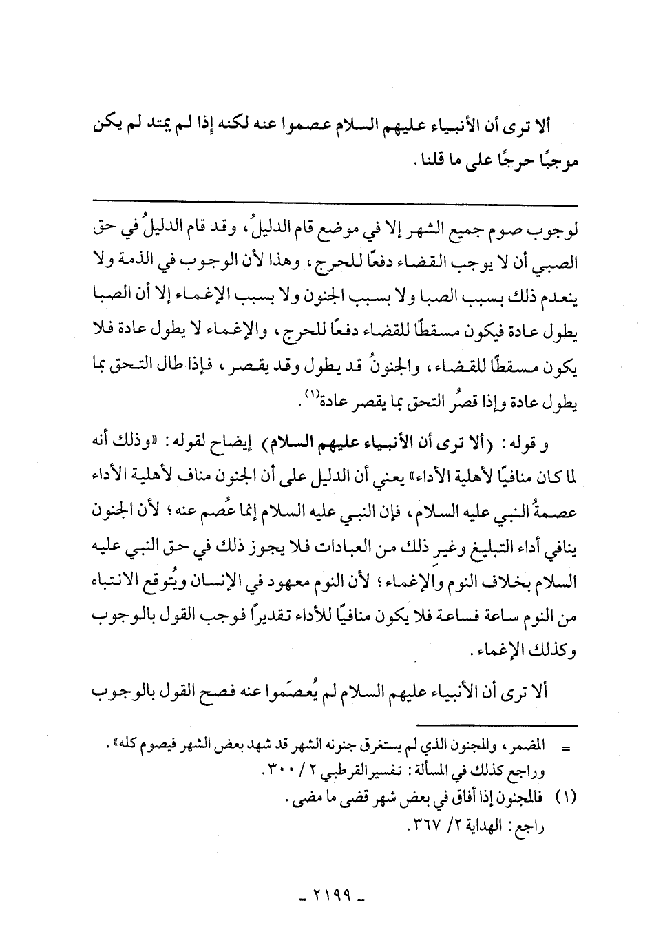 وقوله: (ألا ترى أن الأنبياء عليهم السلام) إيضاح لقوله: "وذلك أنه لما كان منافيًا لأهلية الأداء"يعني أن الدليل على أن الجنون مناف لأهلية الأداء عصمة النبي عليه السلام إنما عصم عنه لأن الجنون ينافي أداء بخلاف النوم والإغماء لأن النوم معهود في الإنسان ويتوقع الإنتباه من النوم ساعة فساعة فلا يكون منافيًا للأداء تقديرًا فوجب القول بالوجوب وكذلك الإغماء.