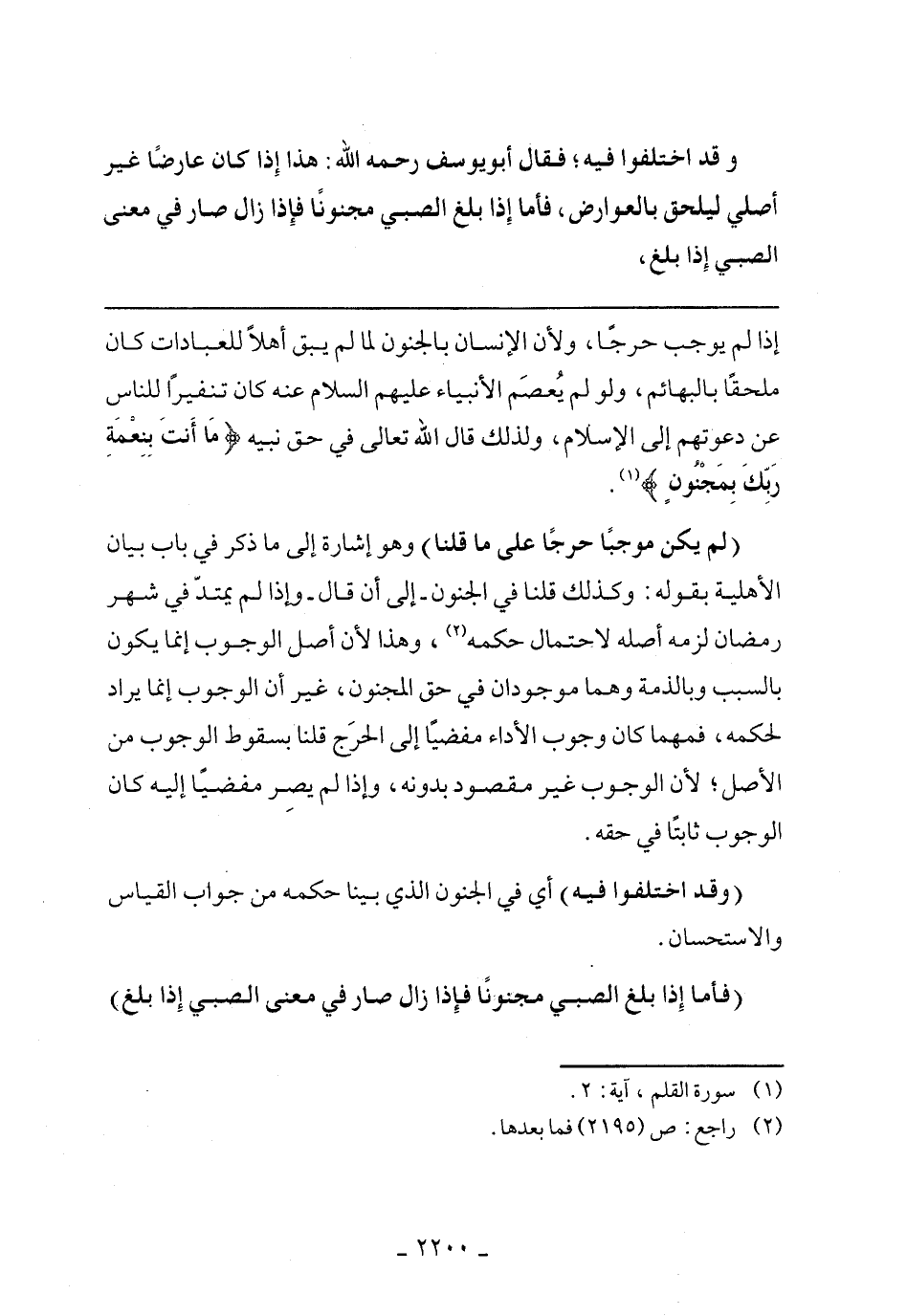إذا لم يوجب حرجًا ولأن الإنسان بالجنون لما لم يبق أهلًا للعبادات كان ملحقًا بالبهائم ولو لم يعصم الأنبياء عليهم السلام عنه كان تنفيرًا للناس عن دعوتهم إلى الإسلام ولذلك قال الله تعالى في حق نبيه (مَا أَنْتَ بِنِعْمَةِ رَبِّكَ بِمَجْنُونٍ).