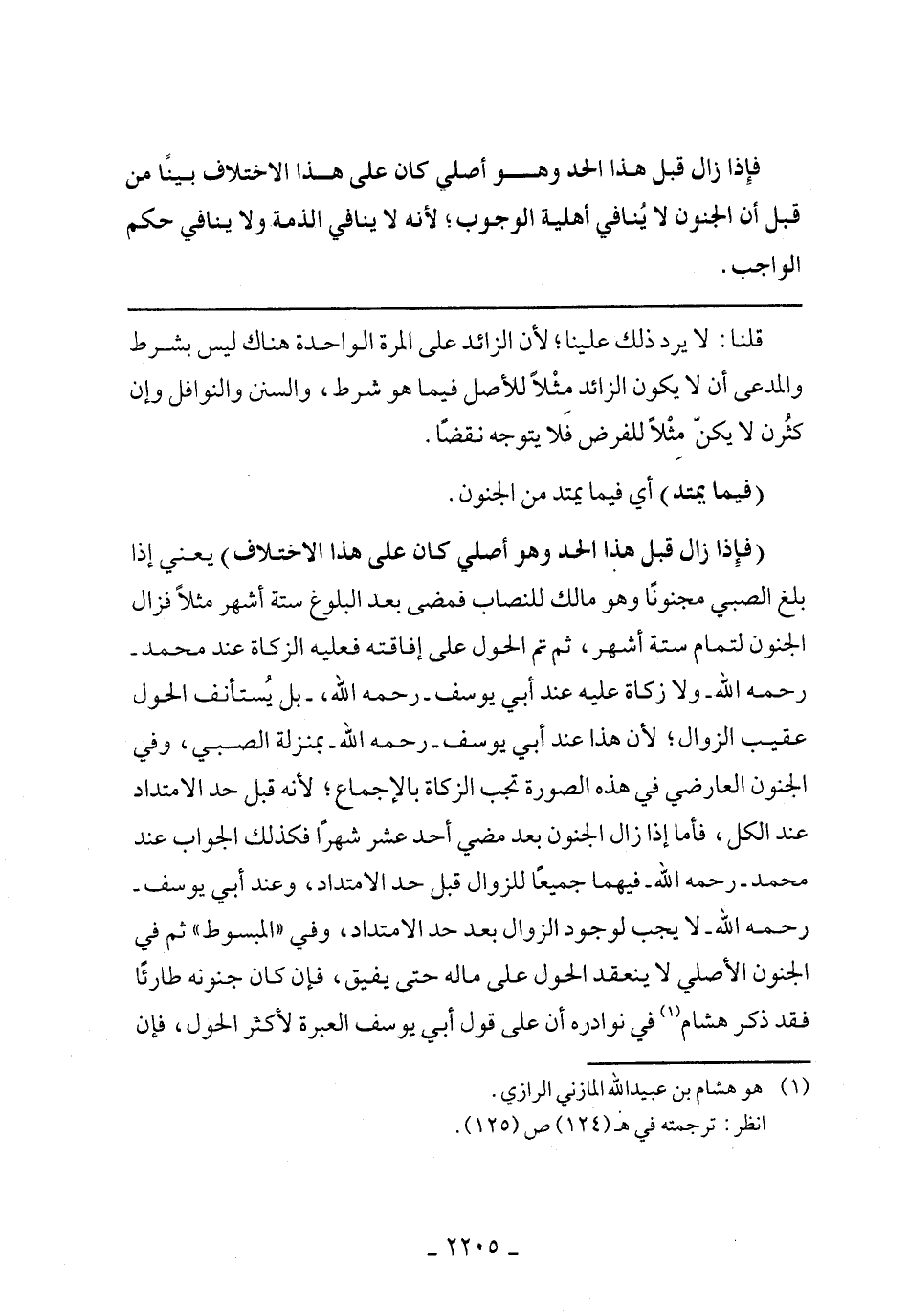 (فإذا زال قبل هذا الحد وهو أصلي كان على هذا الاختلاف) يعني إذا بلغ الصبي مجنونًا وهو مالك للنصاب فمضى بعد البلوغ ستة أشهر مثلًا فزال الجنون لتمام ستة أشهر، ثم تم الحول على إفاقته فعليه الزكاة عند محمد -رحمه الله-، بل يُستأنف الحول عقيب الزوال؛ لأن هذا عند أبي يوسف -رحمه الله- بمنزلة الصبي، وفي الجنون العراضي في هذه الصورة تجب الزكاة بالإجماع؛ لأنه قبل حد الامتداد عند الكل، فأما إذا زال الجنون بعد مضي أحد عشر شهرًا فكذلك الجواب عند محمد -رحمه الله- فيهما جميعًا للزوال قبل حد الامتداد، وعند أبي يوسف -رحمه الله- لا يجب لوجود الزوال بعد حد الامتداد، وفي "المبسوط" ثم في الجنون الأصلي لا ينعقد الحول على ماله حتى يفيق، فإن كان جنونه طارئًا فقد ذكر هشام في نوادره أن على قول أبي يوسف العبرة لأكثر الحول، فإن