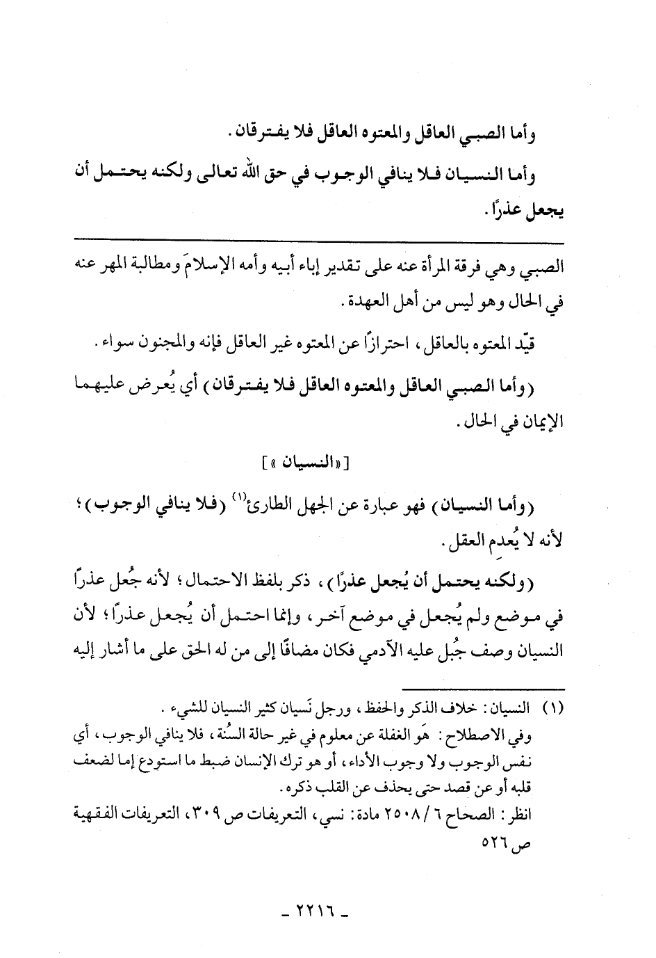 (وأما النسيان) فهو عبارة عن الجهل الطارئ (فلا ينافي الوجوب) لأنه لا يُعدم العقل.