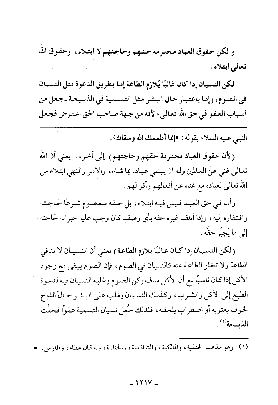 (لكن النسيان إذا كان غالبًا يلازم الطاعة) يعني أن النسيان لا ينافي الطاعة، ولا تخلو الطاعة عنه كالنسيان في الصوم، فإن الصوم يبقى مع وجود الأكل إذا كان ناسيًا مع أن الأكل مناف ركن الصوم وغلبه النسيان فيه لدعوة الطبع إلى الأكل والشرب، وكذلك النسيان يغلب على البشر حال الذبح لخوف يعتريه أو اضطراب يلحقه، فلذلك جعل نسيان التسمية عفوًا فحلت الذبيحة.