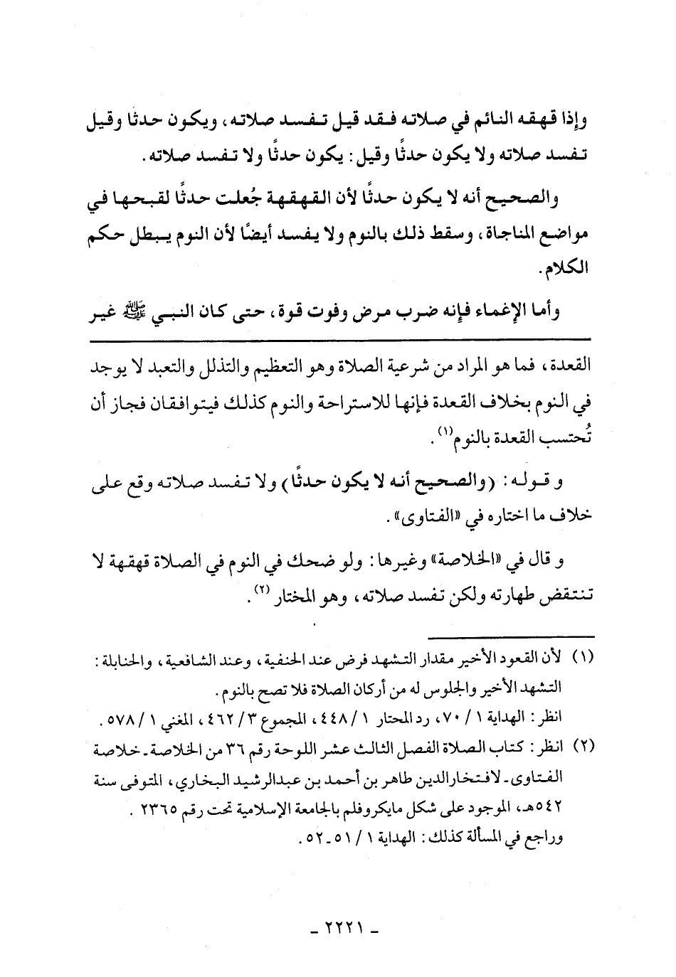 وقال في ((الخلاصة)) وغيرها: ولوضحك في النوم في الصلاة قهقهة لا تنتقض طهارته ولكن تفسد صلاته, وهو المختار.