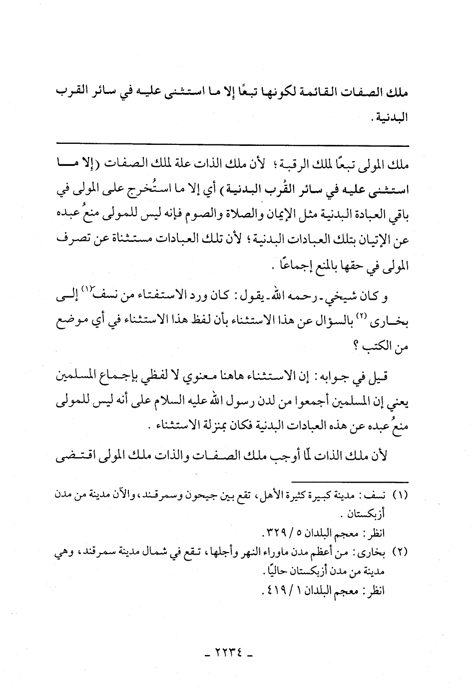وكان شيخي -رحمه الله- يقول: كان ورد الإستفتاء من نسف إلى بخارى بالسؤال عن هذا الاستثناء بأن لفظ هذا الاستثناء في أي موضع من الكتب؟