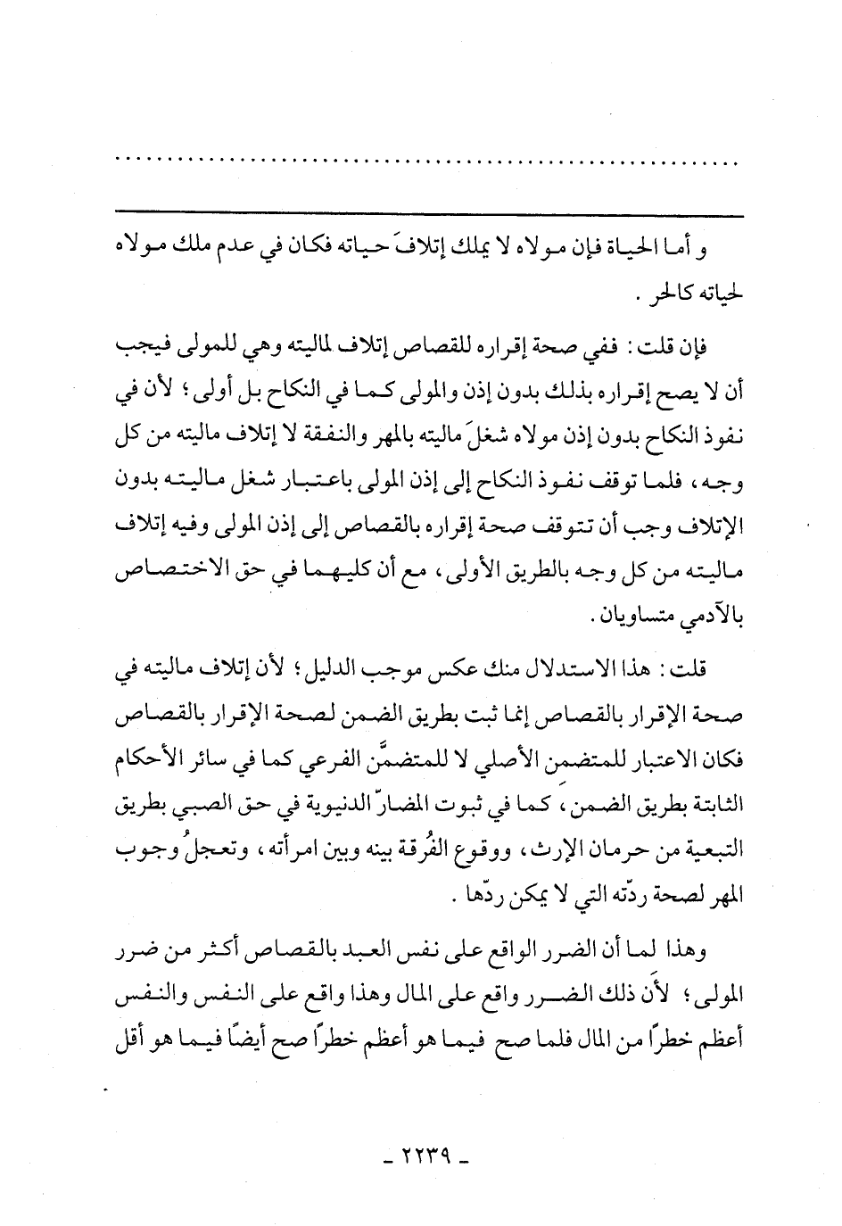 فإن قلت: ففى صحة إقراره للقصاص إتلاف لماليته وهي للمولى فيجب أن لا يصح إقراره بذلك بدون إذن والمولى كما في النكاح بل أولى, لأن في نفوذ النكاح بدون إذن مولاه شغل ماليته بالمهر والنفقة لا إتلاف ماليته من كل وجه, فلما توقف نفوذ النكاح إلى إذن المولى باعتبار شغل ماليته بدون الإتلاف وجب أن تتوقفه صحة إقراره بالقصاص إلى إذن المولى وفيه إتلاف ماليته من كل وجه بالطريق الأولى, مع أن كليهما في حق الإختصاص بالآدمي متساويان.