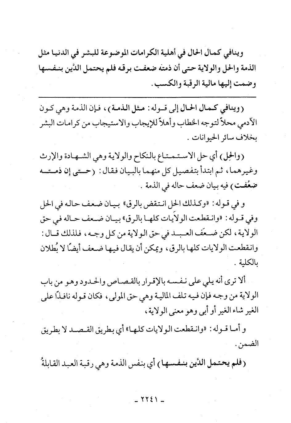 (وينافي كمال الحل إلى قوله: مثل الذمة) , فإن الذدمة وهي كون الآدمي محلًا لتوجه الخطاب وأهلًا للإيجاب والإستيجاب من كرامات البشر بخلاف سائر الحيوانات.