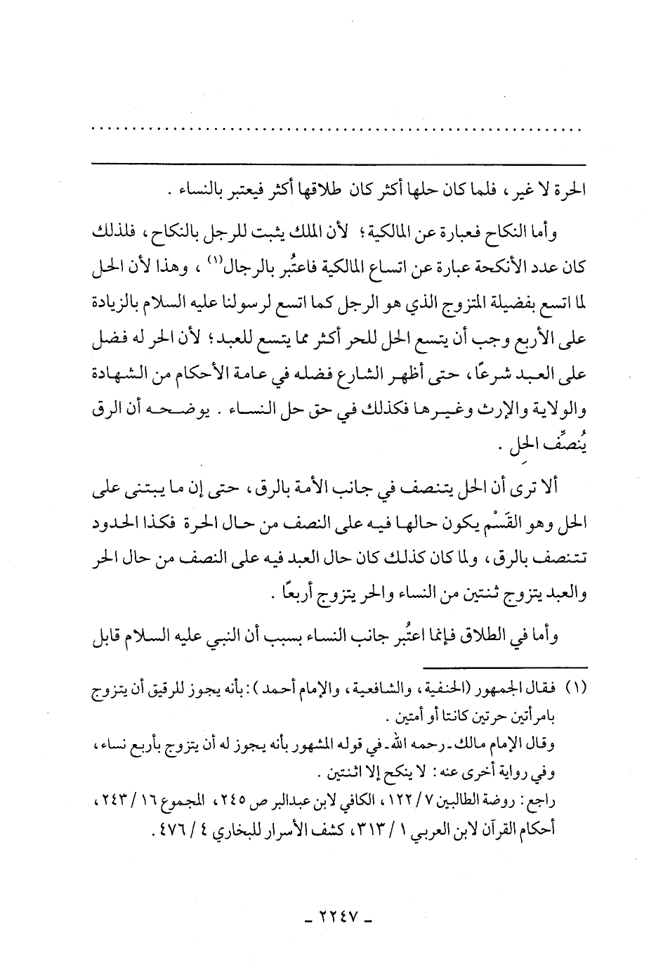 وأما النكاح فعبارة عن المالكية, لان الملك يثبت للرجل بالنكاح, فلذلك كان عدد الانكحة عبارة عن اتساع المالكية فاعتبر بالرجال, وهذا لأن الحل لما اتسع بفضيلة المتزوج الذي هو الرجل كما اتسع لرسولنا عليه السلام بالزيادة على الأربع وجب أن يتسع الحل للحر أكثر مما يتسع للعبد, لأن الرح له فضل على العبد شرعًا, حتى أظهر الشارع فضله في عامة الأحكام من الشهادة والولاية والإرث وغيرها فكذلك في حق حل النساء. يوضحه أن الرق ينصف الحل.