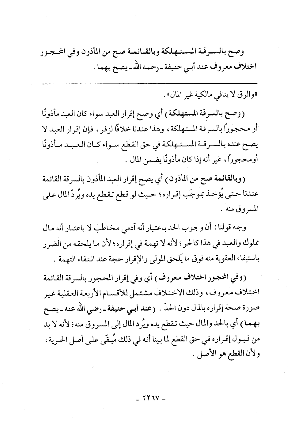 (وصح بالسرقة المستهلكة) أي وضح إقرار العبد سواء كان العبد مأذونًا أو محجورًا بالسرقة المستهلكة، وهذا عندنا خلافًا لزفر، فإن إقرار العبد لا يصح عنده بالسرقة المستهلكة في القطع سواء كان العبد مأذونًا أو محجورًا، غير أنه إذا كان مأذونًا يضمن المال.