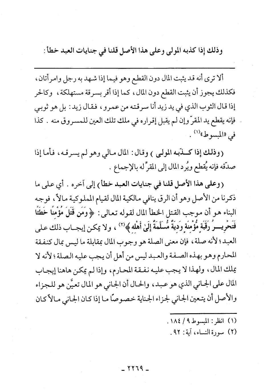 ألا ترى أنه قد يثبت المال دون القطع وهو فيما إذا شهد به ر جل وامرأتان، فكذلك يجوز أن يثبت القطع دون المال، كما إذا أقر بسرقة مستهلكة، وكالحر إذا قال الثوب الذي ف ي يد زيد أنا سرقته من عمرو، فقال زيد: بل هو ثوبي فإنه يقطع يد المقر وإن لم يقبل إقراره في ملك تلك العين للمسروق منه. كذا في "المبسوط".