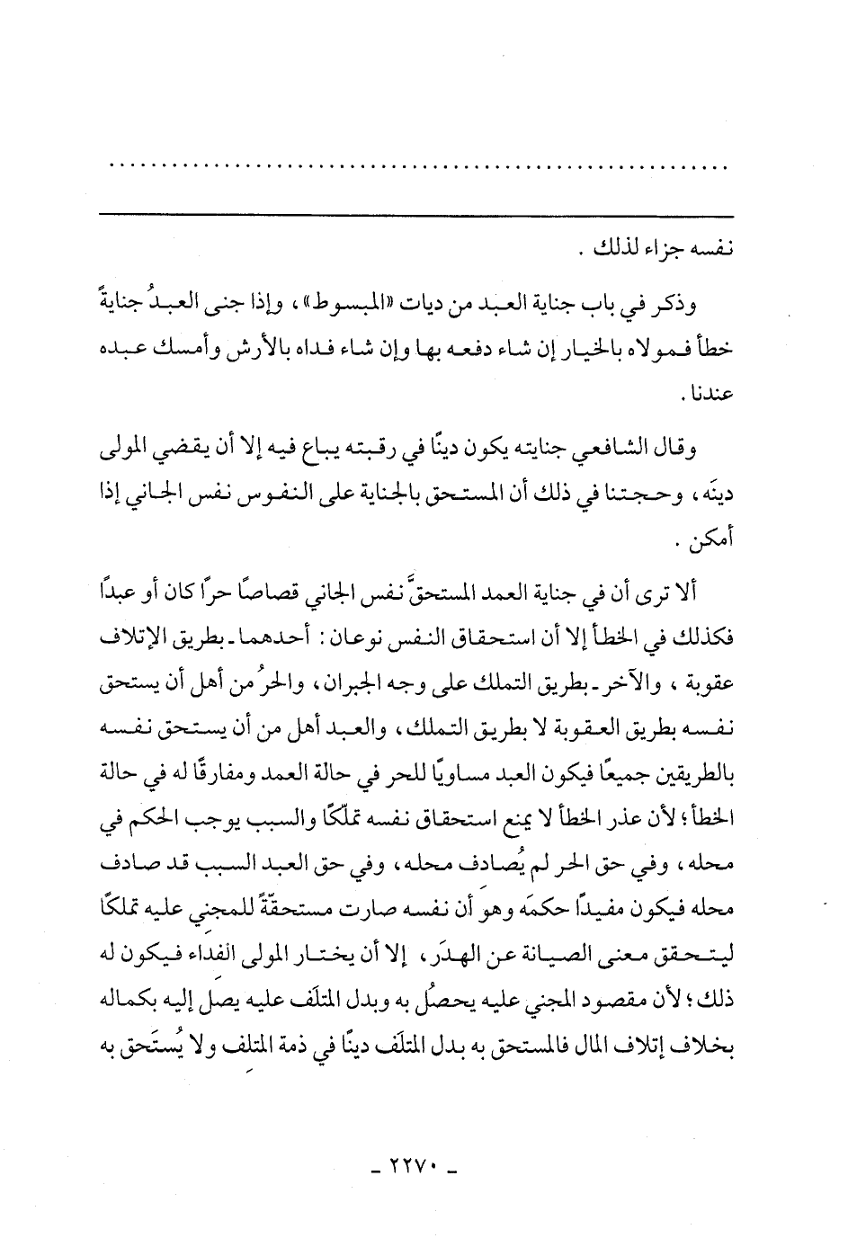 ألا ترى أن في جناية العمد المستحق نفس الجاني قصاصًا حرًا كان أو عبدًا فكذلك في الخطأ إلا أن استحقاق النفس نوعان: أحدهما- بطريق الإتلاف عقوبة، والآخر- بطريق التملك على وجه الجبران، والحر من أهل أن يستحق نفسه بطريقة العقوبة لا بطريق التملك، والعبد أهل من أن يستحق نفسه بالطريقين جميعًا ف يكون العبد مساويًا للحر في حالة العمد ومفارقًا له في حالة الخطأ، لن عذر الخطأ لا يمنع استحقاق نفسه تملكًا والسبب يوجب الحكم في محله، وفي حق الحر لم يصادف محله، وفي حق العبد السبب قد صادف محله فيكون مفيدًا حكمه وهو أن نفسه صارت مستحقة للمجني عليه تملكًا ليتحقق معنى الصيانة عن الهدر، إلا أن يختار المولى الفداء فيكون له ذلك، لأن مقصود المجني عليه يحصل به وبدل المتلف عليه يصل إلى بكماله بخلاف إتلاف لمال ف المستحق به بدل المتلف دينًا في ذمة المتلف ولا يستحق به