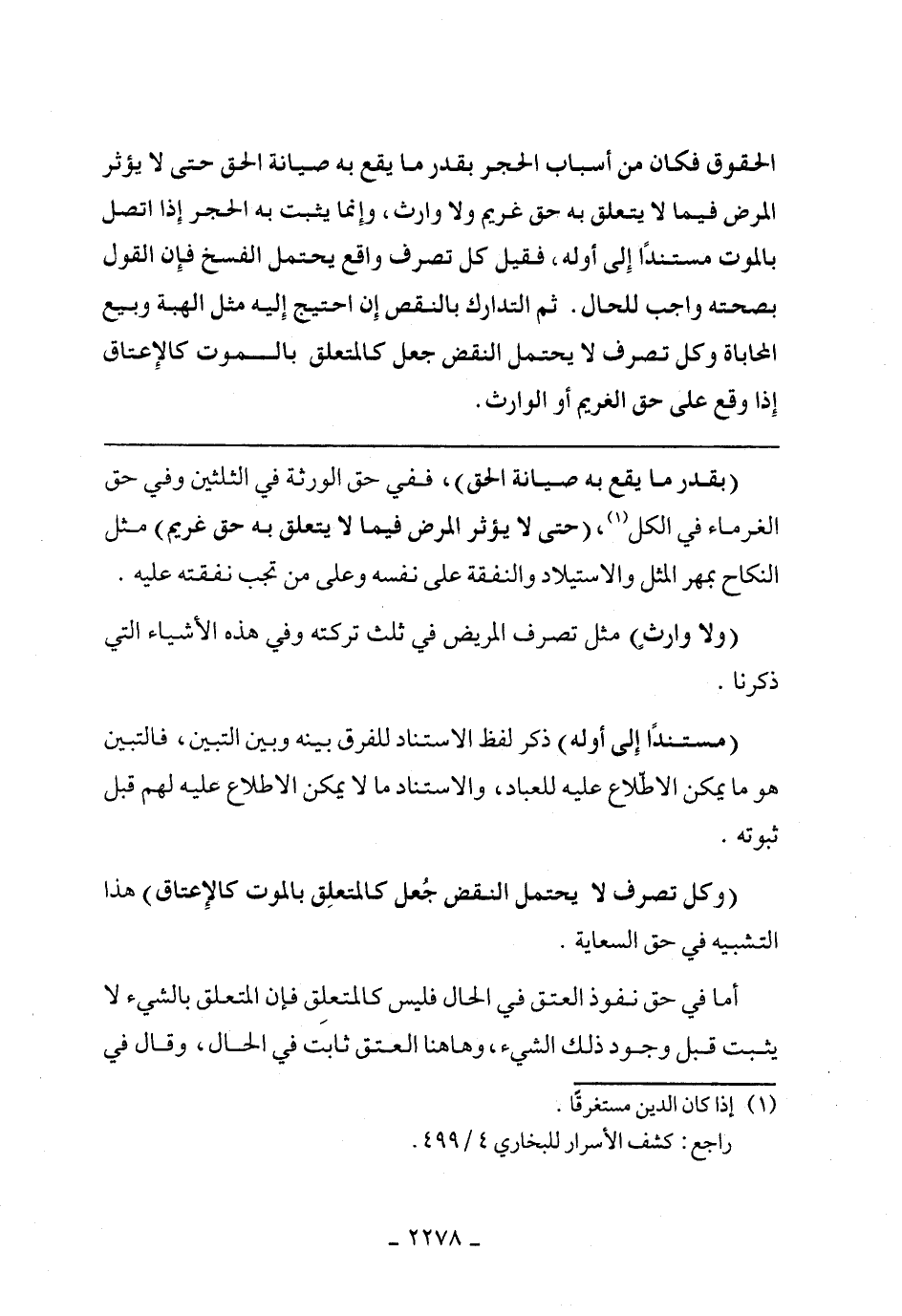 (بقدر ما يقع به صيانة الحق)، ففي حلق الورثة في الثلثين وفي حق الغرماء في الكل، (حتى لا يؤثر المرض فيما لا يتعلق به حق غريم) مثل النكاح بمهر المثل والاستيلاء والنفقة على نفسه وعلى من تجب نفقته عليه.