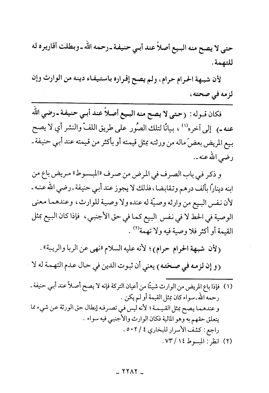 فكان قوله: (حتى لا يصح منه البيع أصلًا عند أبي حنيفة رضي الله عنه)، بيانًا لتلك الصور على طريق اللف والنشر أي لا يصح بيع المريض بعض ماله من ورثته بمثل قيمته أو بأكثر من قيمته عند أبي حنيفة رضي الله عنه.