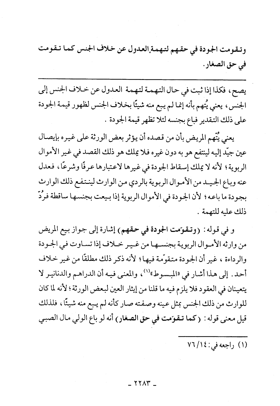 يعني يتهم المريض بأن من قصده أن يؤثر بعض الورثة على غيره بإيصال عين جيد إليه لينتفع هو به دون غيره فلا يملك هو ذلك القصد في غير الأموال الربوية؛ لأنه لا يملك إسقاط الجودة في غيرها لاعتبارها عرفًا وشرعًا، فعدل عنه وباع الجيد من الأموال الربوية بالردي من الواررث لينتفع ذلك الوارث بجودة ما باعه؛ لأن الجودة في الأموال الربوية إذا بيعت بجنسها ساقطة فرد ذلك عليه للتهمة.