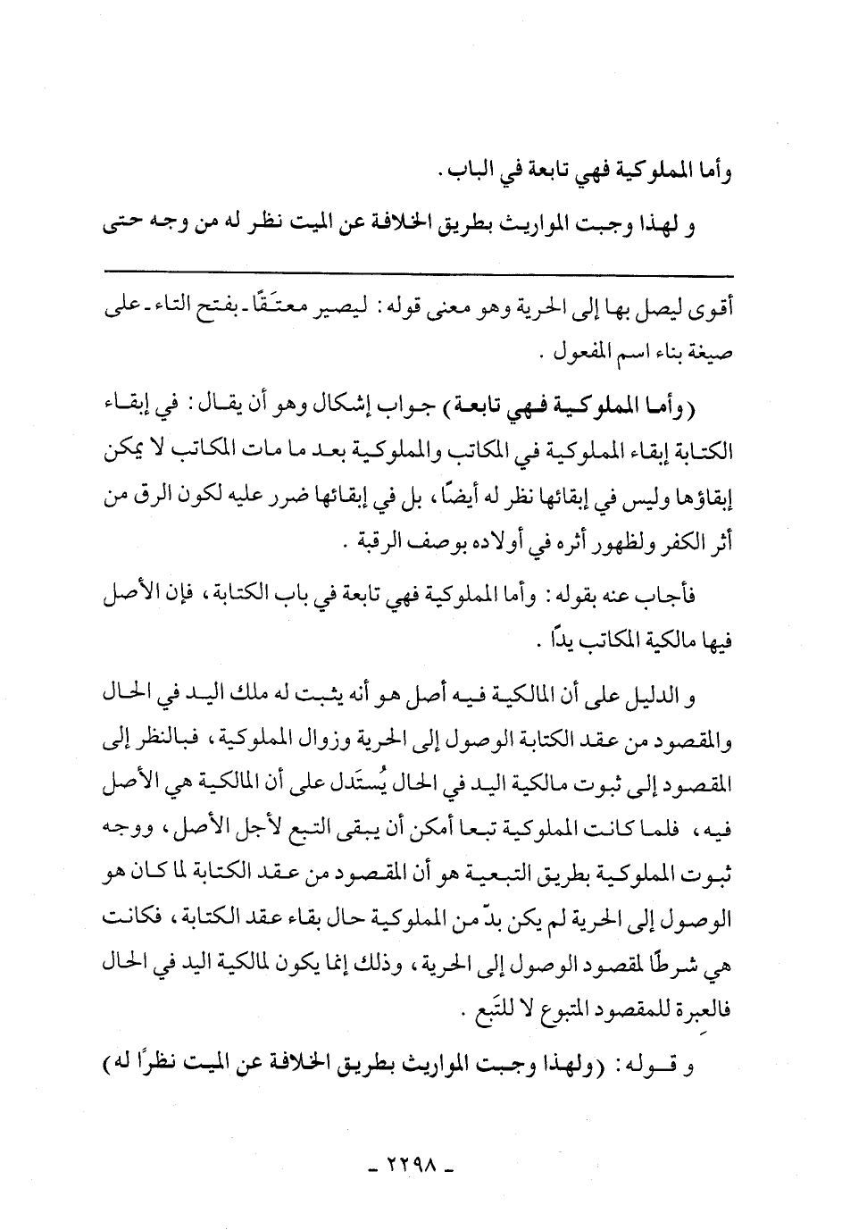 فأجاب عنه بقوله: وأما المملوكية فهي تابعة في باب الكتابة، فإن الأصل فيها مالكية المكاتب يدًا.