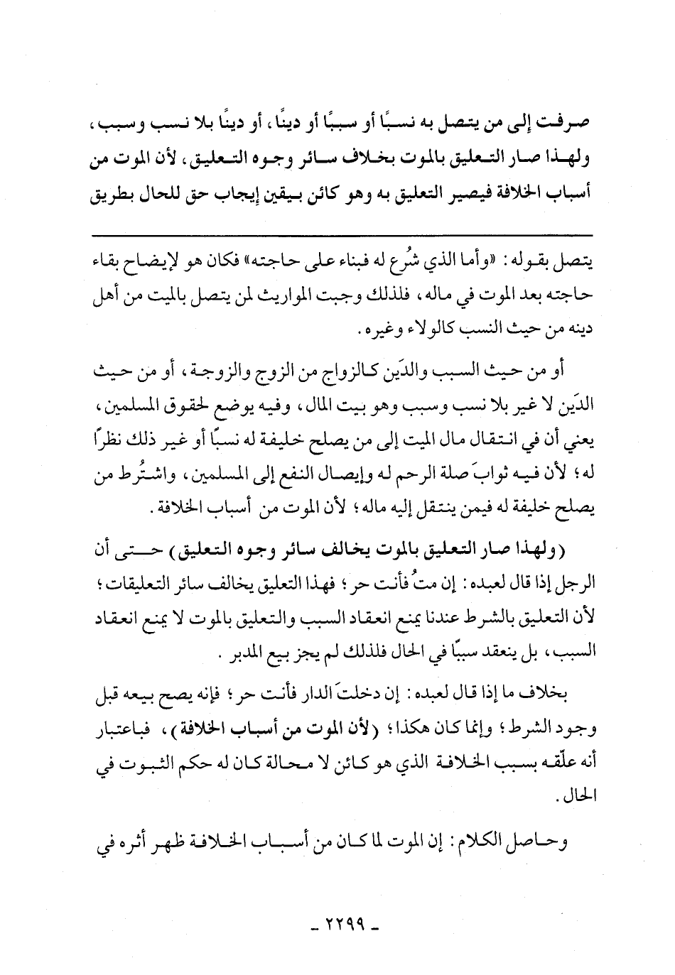أو من حيث السبب والدين كالزواج من الزوج والزوجة، أو من حيث الدين لا غير بلا نسب وسبب وهو بيت المال، وفيه يوضع لحقوق المسلمين، يعني أن في انتقال مال الميت إلى من يصلح خليفة له نسبًا أو غير ذلك نظرًا له؛ لن فيه ثواب صلة الرحم له وإيصال النفع إلى المسلمين، واشترط من يصلح خليفة له فيمن ينتقل إليه ماله؛ لأن الموت من أسباب الخلافة.