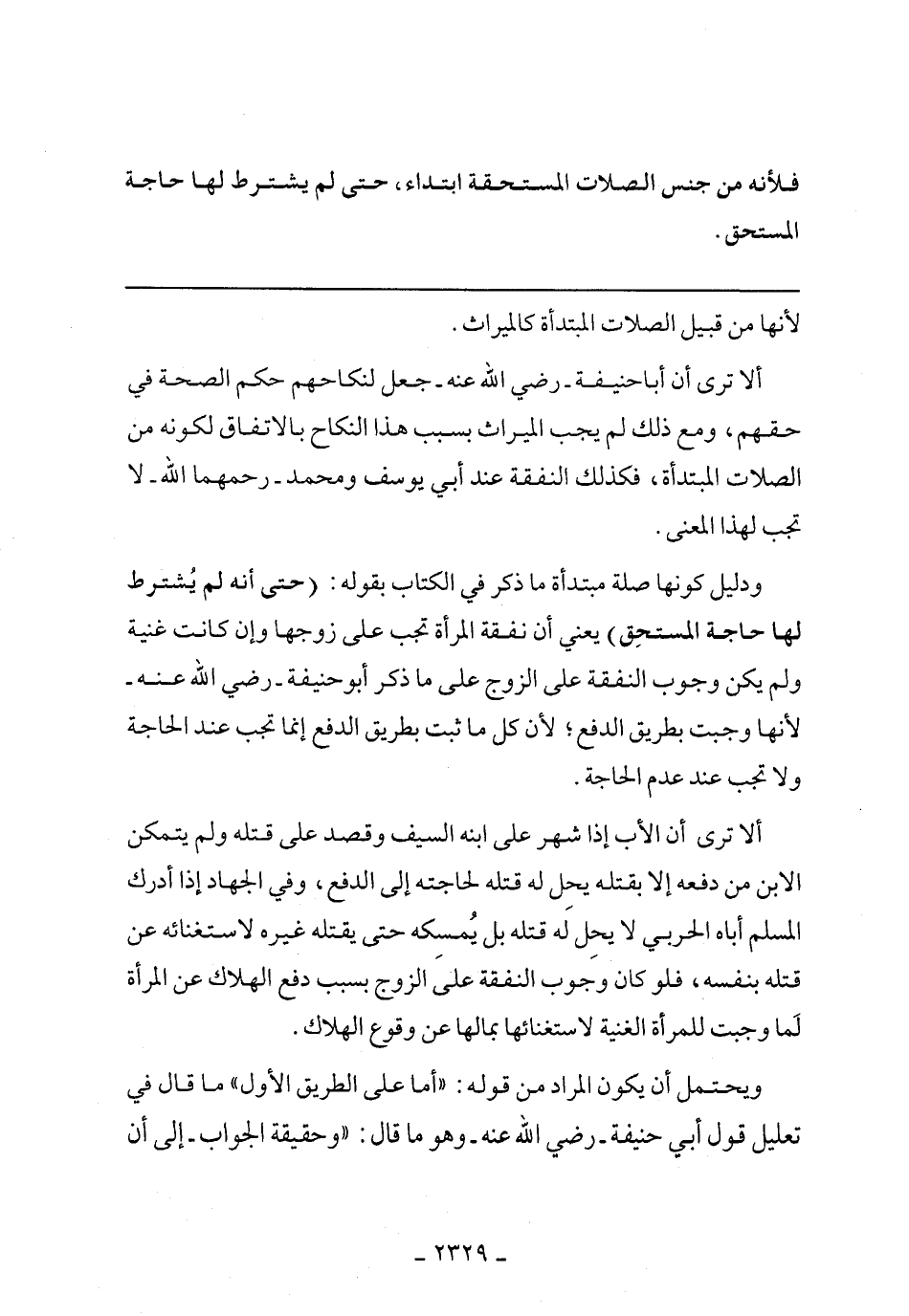 ألا ترى أن الأب إذا اشهر على ابنه السيف وقصد على قتله ولم يتمكن الابن من دفعه إلا بقته يحل له قتله لحاجته إلى الدفع، وفي الجهاد إذا أدرك المسلم أباه الحربي لا يحل له قتله بل يمسكه حتى يقتله غيره لاستغنائه عن قتله بنفسه، فلو كان وجوب النفقة على الزوج بسبب دفع الهلاك عن المرأة لما وجبت للمرأة الغنية لاستغنائها بمالها عن وقوع الهلاك.