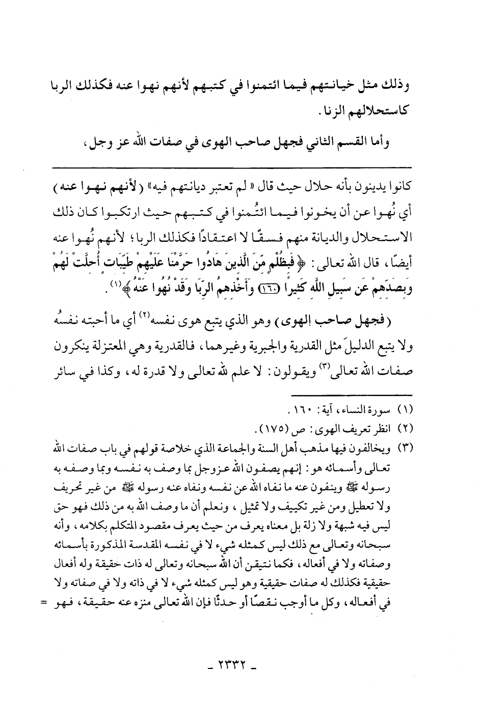 (فجعل صاحب الهوى) وهو الذي يتبع هوى نفسه أي ما أحبته نفسه ولا يتبع الدليل مثل القدرية والجبرية وغيرهما، فالقدرية وهي المعتزلة ينكرون صفات الله تعالى ويقولون: لا علم لله تعالى ولا قدرة له، وكذا في سائر