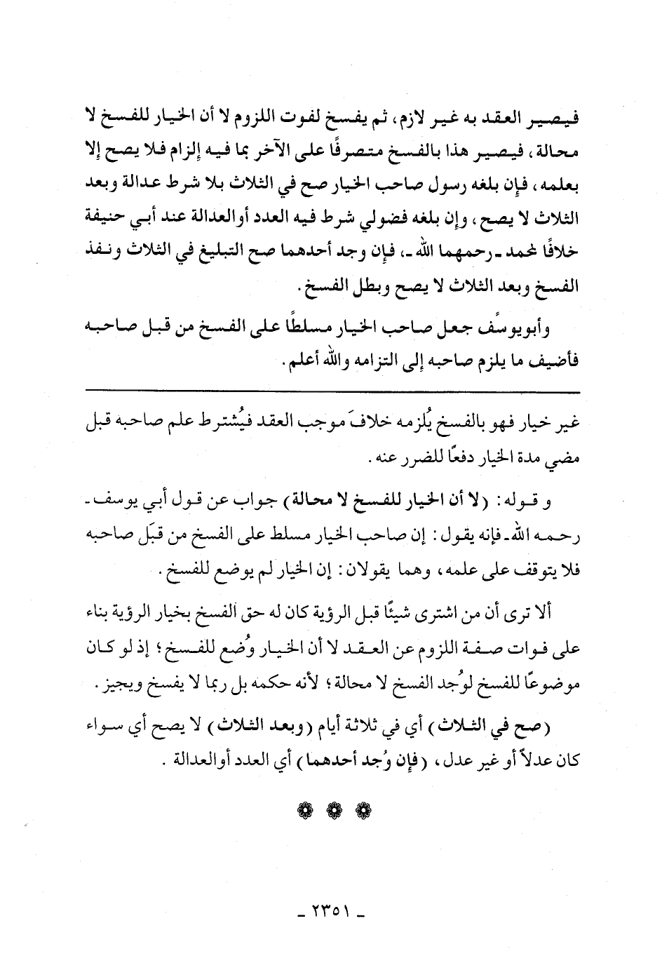 ألا ترى أن من اشترى شيئًا قبل الرؤية كان له حق الفسخ بخيار الرؤية بناء على فوات صفة اللزوم عن العقد لا أن الخيار وضع للفسخ، إذا لو كان موضوعًا للفسخ لوجد الفسخ لا محالة، لأنه حكمه بل ربما لا يفسخ ويجيز.