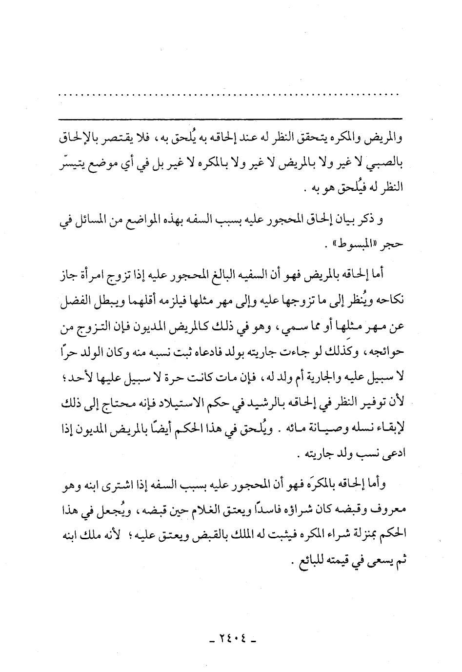 وذكر بيان إلحاق المحجور علي بسبب السفه بهذه المواضع من المسائل في حجر"المبسوط".