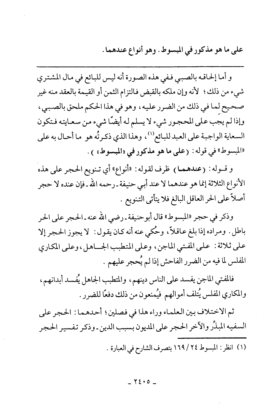 ثم الاختلاف بين العلماء وراء هذا في فصلين؛ أحدهما: الحجر على السفيه المبذر والأخر الحجر على المديون بسبب الدين- وذكر تفسير الحجر