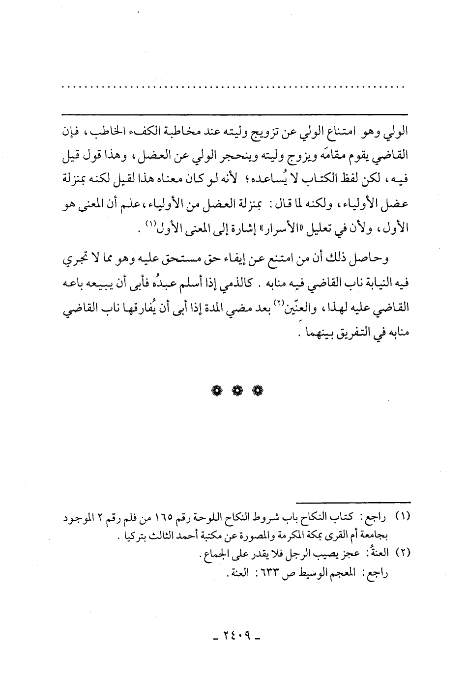 الولي وهو امتناع الولي عن تزويج وليته عند مخاطبة الكفء الخاطب، فإن القاضي يقوم مقامه ويزوج وليته وينحجر الولي عن العضل، وهذا قول قيل فيه، لكن لفظ الكتاب لا يساعده؛ لأنه لو كان معناه هذا لقيل لكنه بمنزلة عضل الأولياء، ولكنه لما قال: بمنزلة العضل من الأولياء، علم أن المعنى هو الأول، ولأن في تعليل "الأسرار" إشارة إلى المعنى الأول.