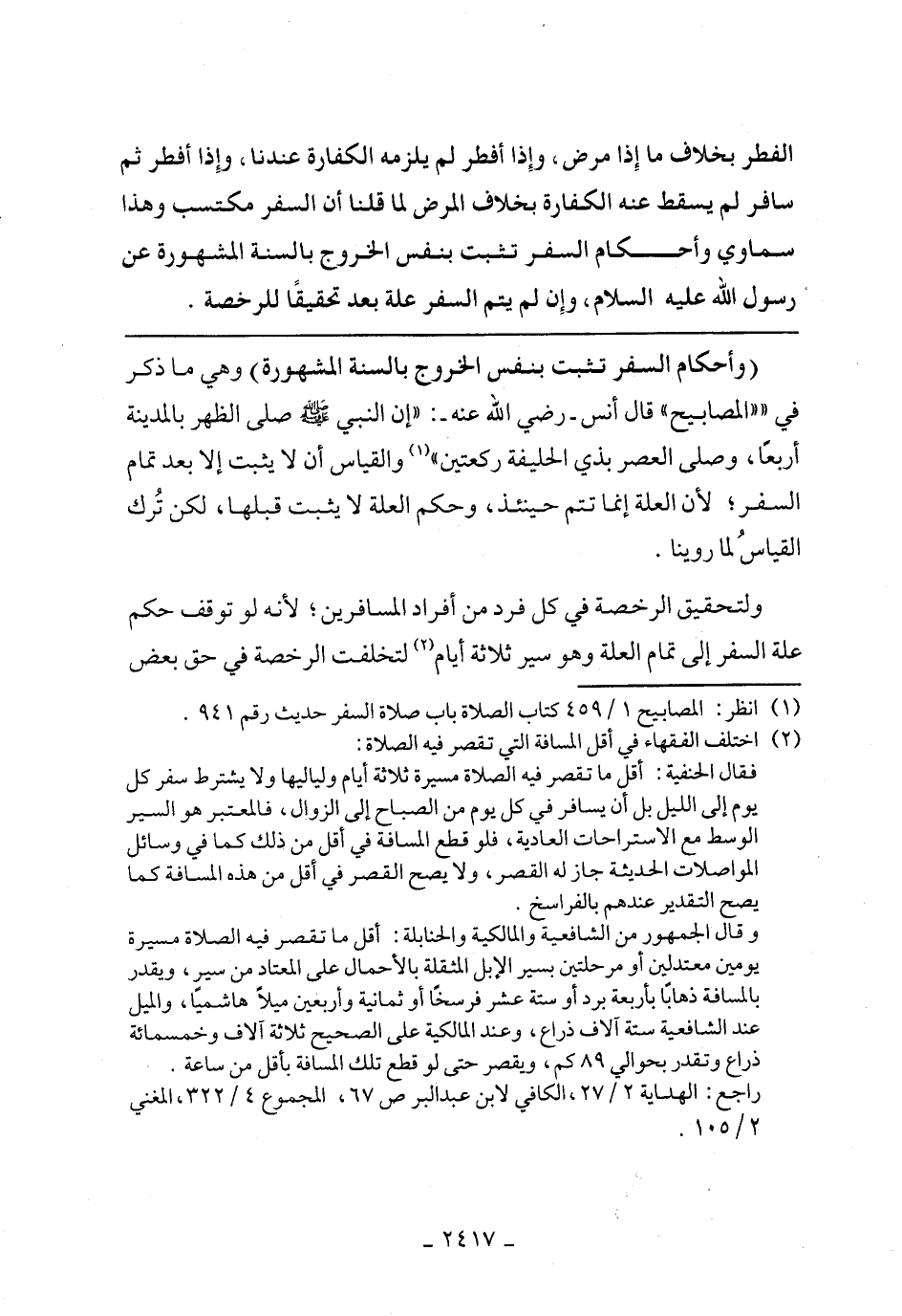 ولتحقيق الرخصة في كل فرد من أفراد المسافرين؛ لأنه لو توقف حكم علة السفر إلى تمام العلة وهو سير ثلاثة أيام لتخلفت الرخصة في حق بعض