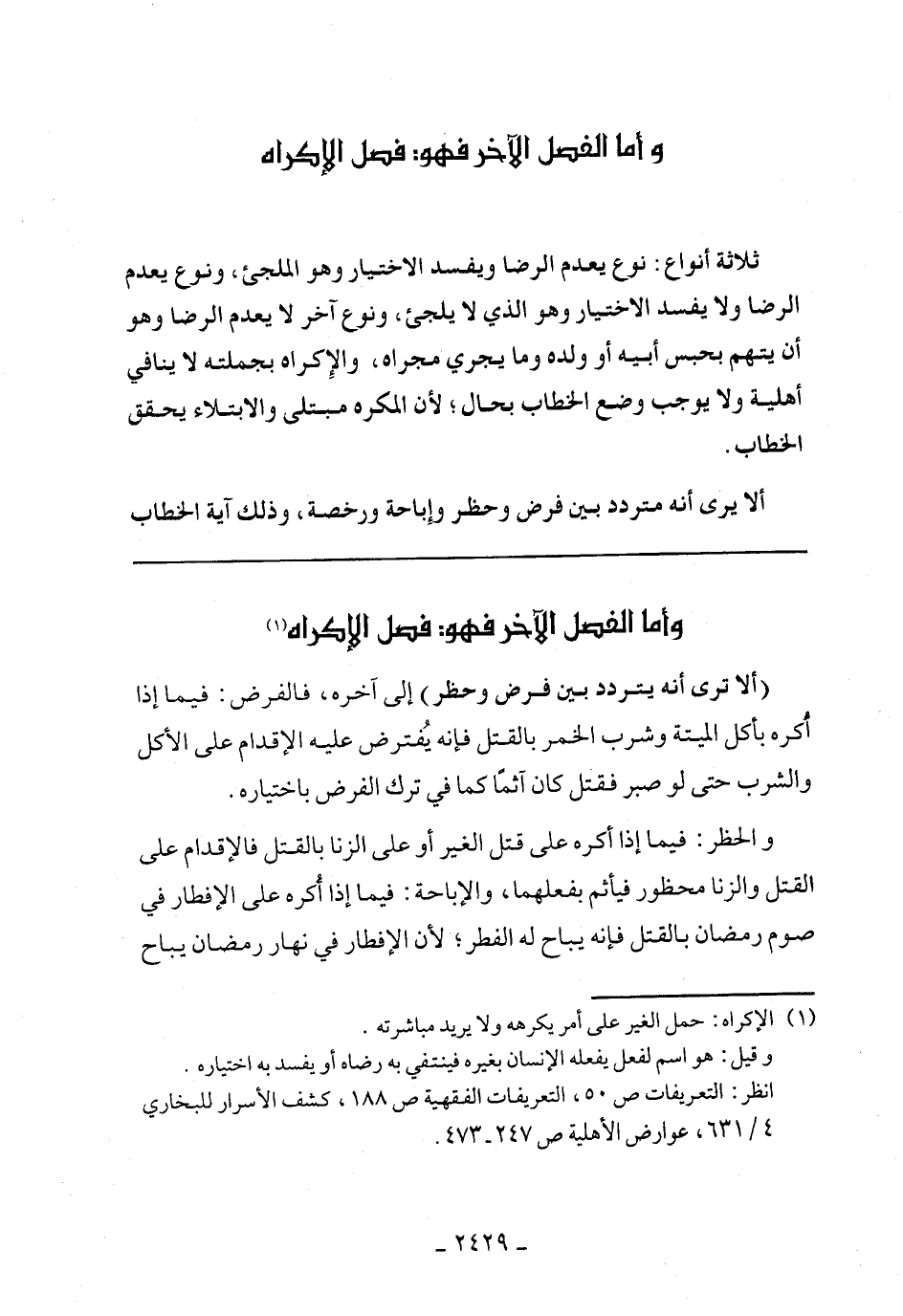 وأما الفصل الآخر فهو: فصل الإكراه