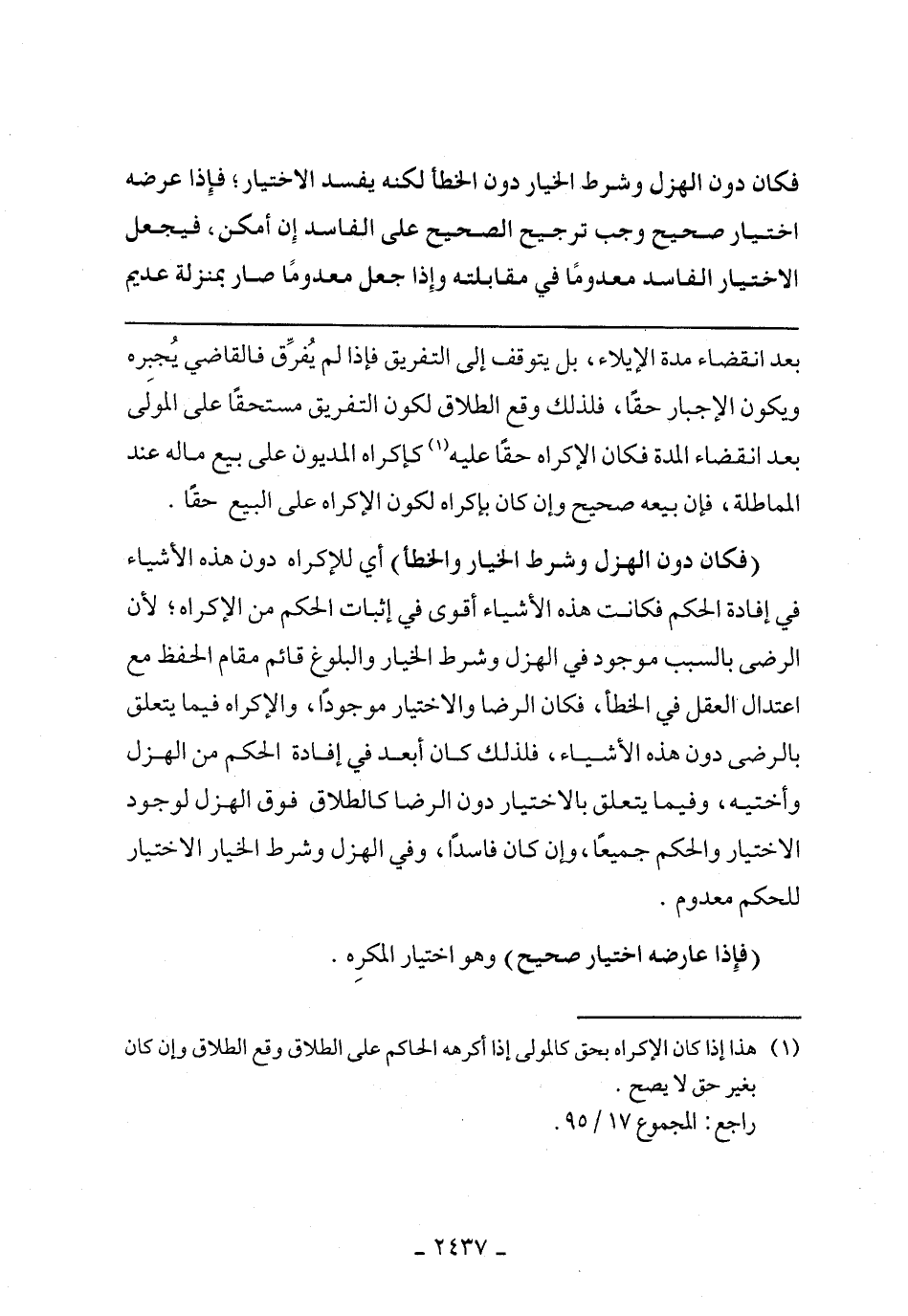 بعد انقضاء مدة الإيلاء، بل يتوقف إلى التفريق فإذا لم يفرق فالقاضي يجبره ويكون الإجبار حقا، فلذلك وقع الطلاق لكون التفريق مستحقا على المولى بعد انقضاء المدة فكان الإكراه حقا عليه كإكراه المديون على بيع ماله عند المماطلة، فأن بيع صحيح وإن كان بإكراه لكون الإكراه على البيع حقا.