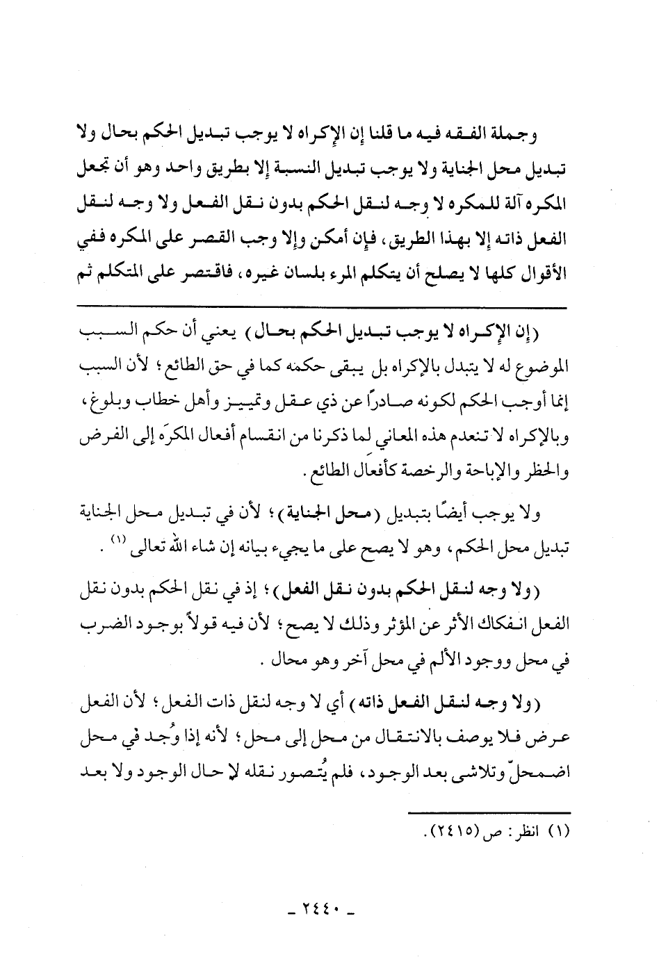 (ولا وجه لنقل الفعل ذاته) أي لا وجه لنقل ذات الفعل؛ لأن الفعل عرض فلا يوصف بالانتقال من محل إلى محل؛ لأنه إذا وجد في محل اضمحل وتلاشى بعد الوجود؛ فلم يتصور نقله لا حال الوجود ولا بعد