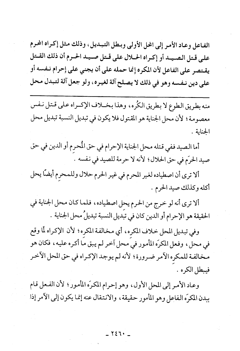 ألا ترى أنه لو خرج من الحرم يحل اصطياده، فلما كان محل الجناية في الحقيقة هو الإحرام أو الدين كان في تبديل النسبة تبديل محل الجناية.