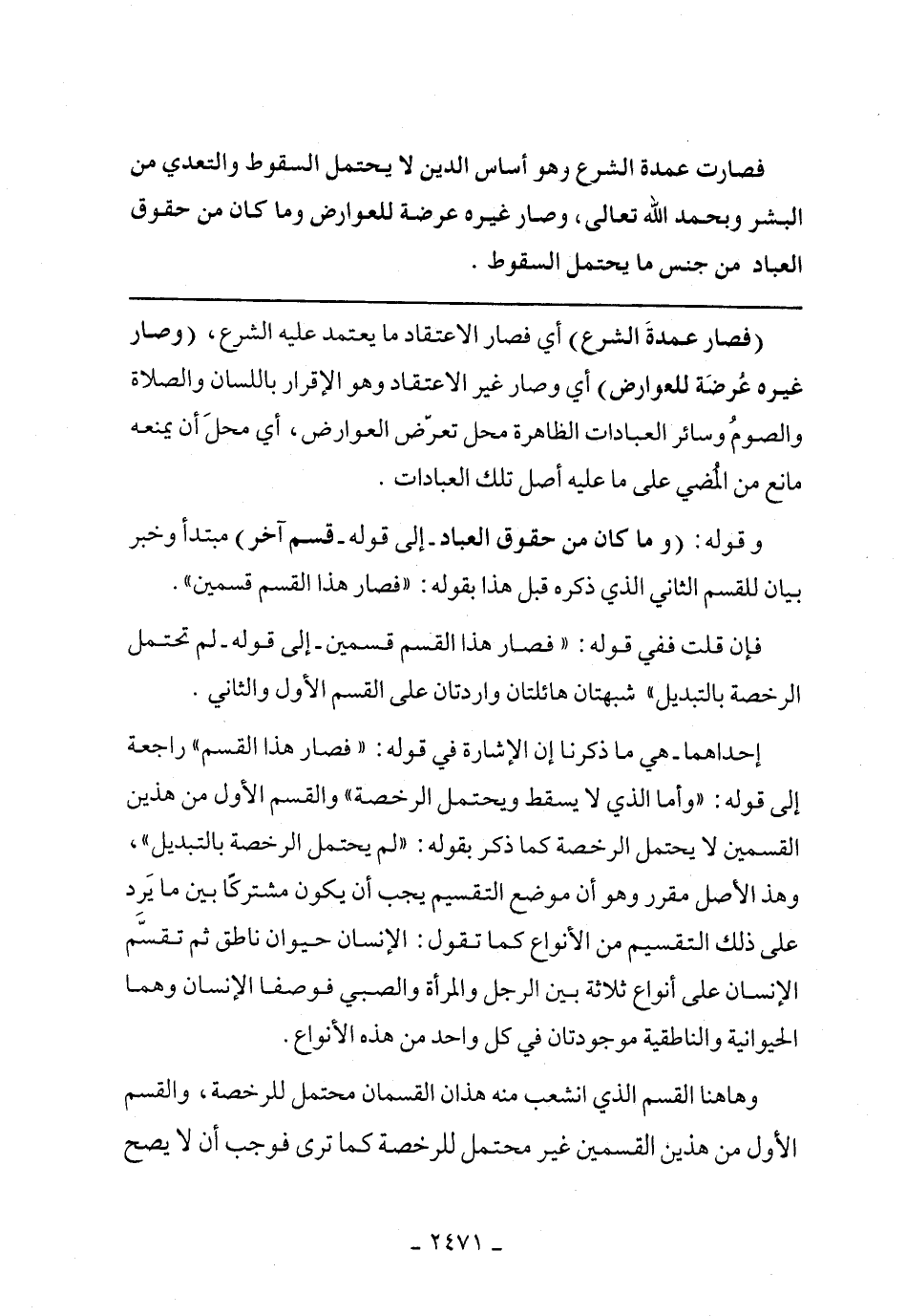 وهاهنا القسم الذي انشعب منه هذان القسمان محتمل للرخصة، والقسم الأول من هذين القسمين غير محتمل للرخصة كما ترى فوجب أن لا يصح