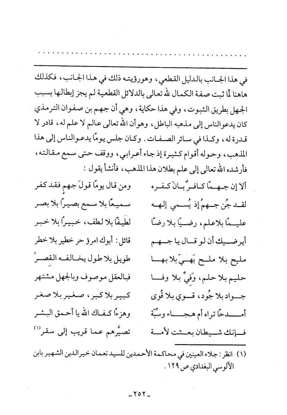 ألا إن جهمًا كافر بان كفره ... ومن قال يومًا قول جهم فقد كفر