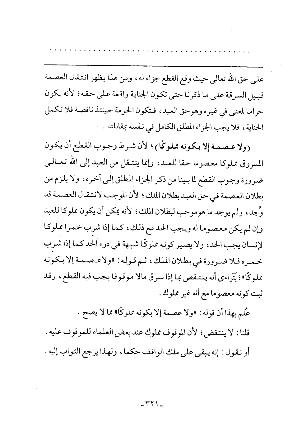 علم بهذا أن قوله: "ولا عصمة إلا بكونه مملوكًا" مما لا يصح.